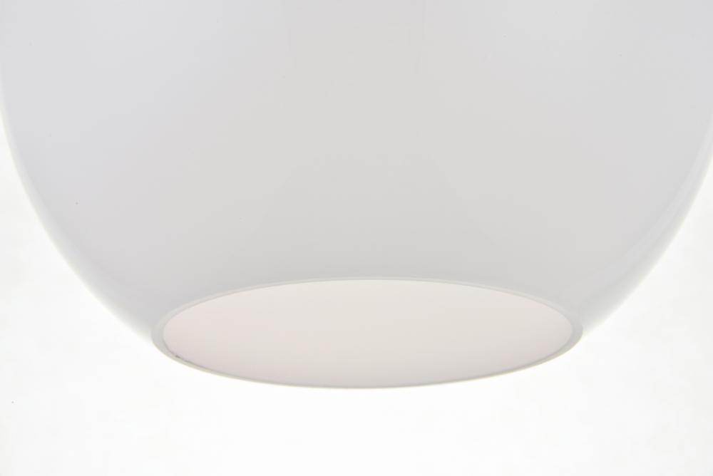 Feature 2: spherical frosted white glass shade with open center for easy bulb replacement