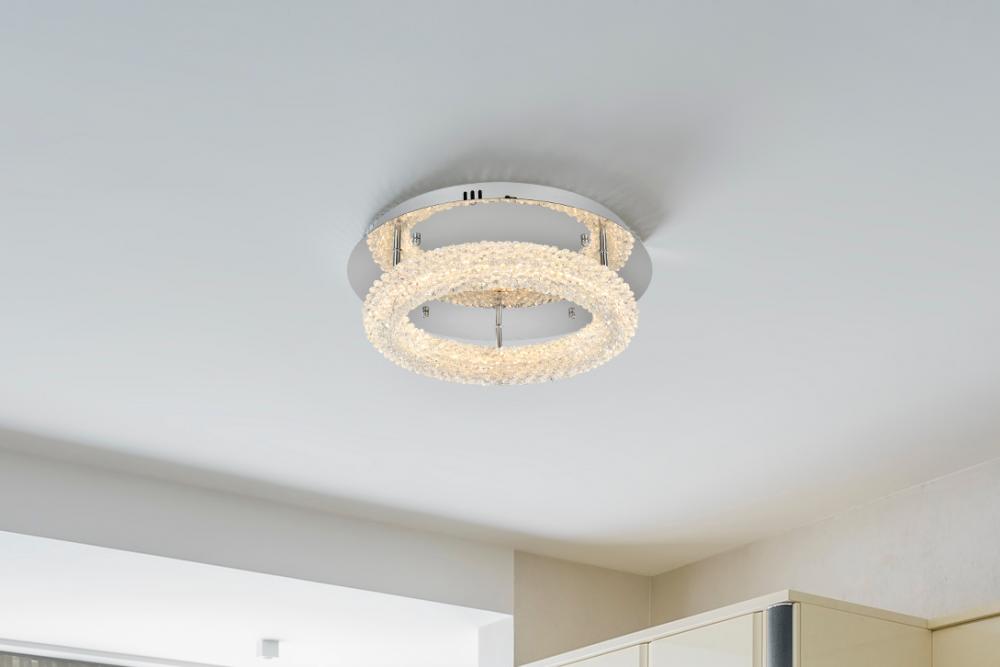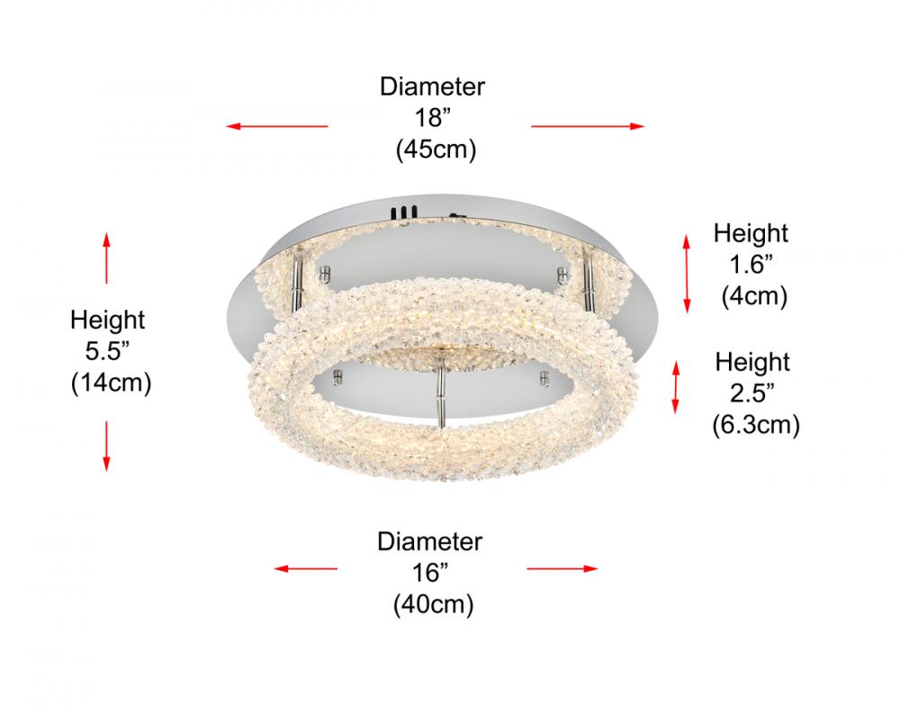 Elevate your space with this enchanting 18 inch LED Flush Mount, featuring a captivating round crystal-adorned design for a touch of sophistication.