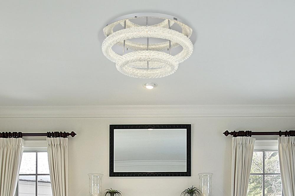 Illuminate your space with this enchanting 26 inch LED Tiered Flush Mount, showcasing two captivating rings adorned with crystals for a touch of sophistication.