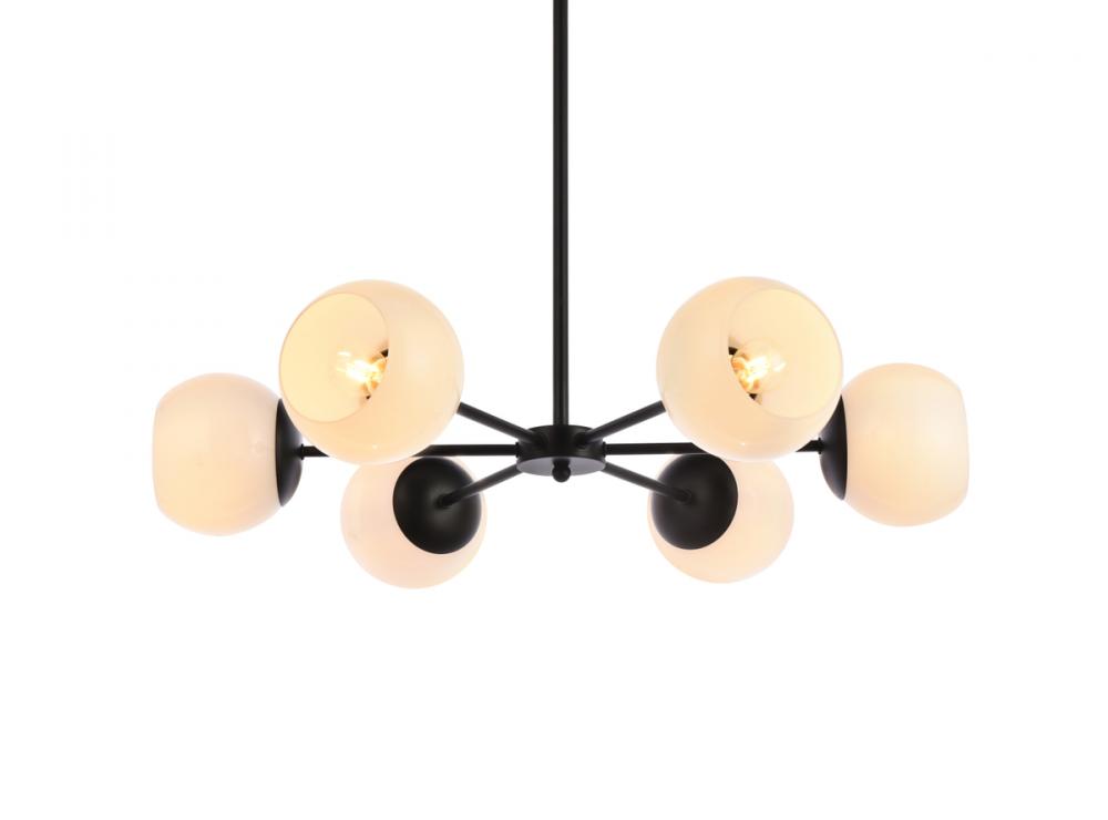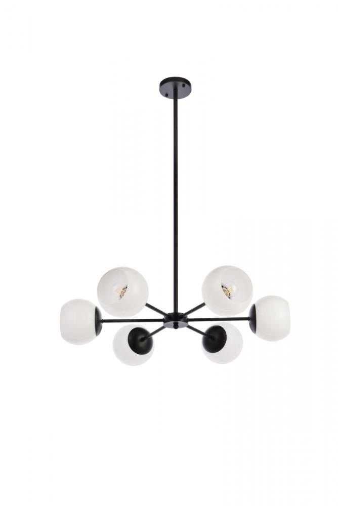 The Briggs collection pendant illuminates in all directions, creating a wonderful display of artistic style and brilliance. If your home was a modern art exhibit, then you have curated the best possible piece of art. With six lights pointing in different directions, and the painted finish gleaming in modern beauty, you won't have to worry about being "up to date" because you already are (light bulbs not included). This modern light fixture is adorned with spherical glass globes. The hardware finish brings an element of sophistication that can accentuate all styles of interior design.