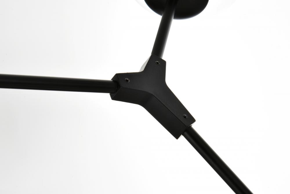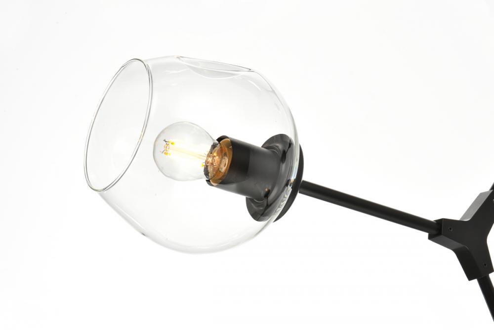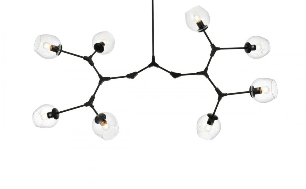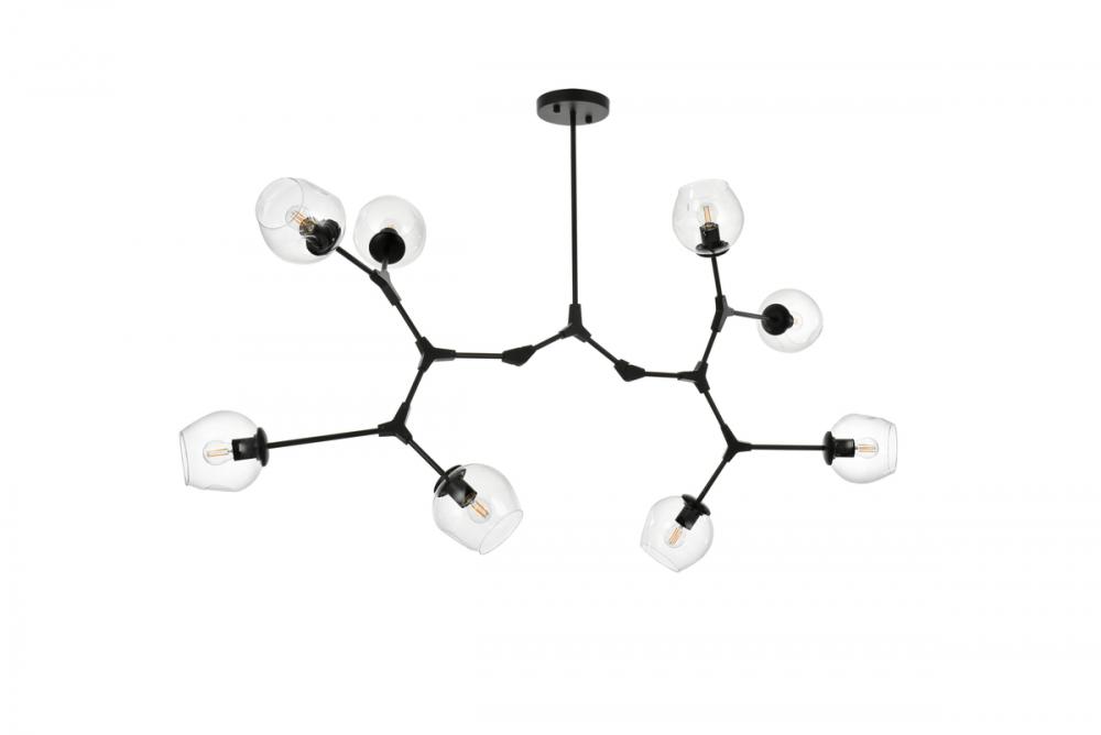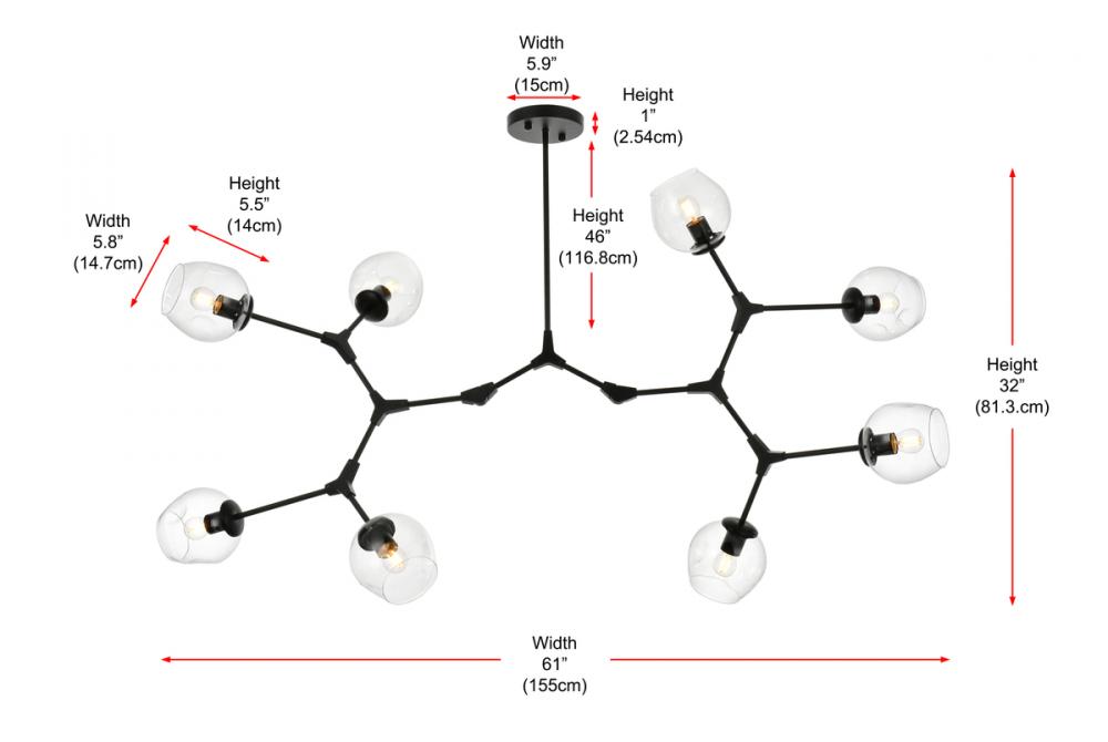 Introducing the Cavoli 74-Inch Chandelier, a perfect fusion of contemporary design and geometric allure. Crafted from durable iron, this visually captivating centerpiece not only adds a sleek modern aesthetic to your space but also ensures a robust and enduring lighting solution. The chandelier holds UL certification, guaranteeing safety and performance adherence. Boasting eight lights with clear glass globe shades, this chandelier offers a stunning visual display, complemented by a dimmable feature for personalized lighting preferences. (Bulbs not included). Illuminate your space with confidence and style.