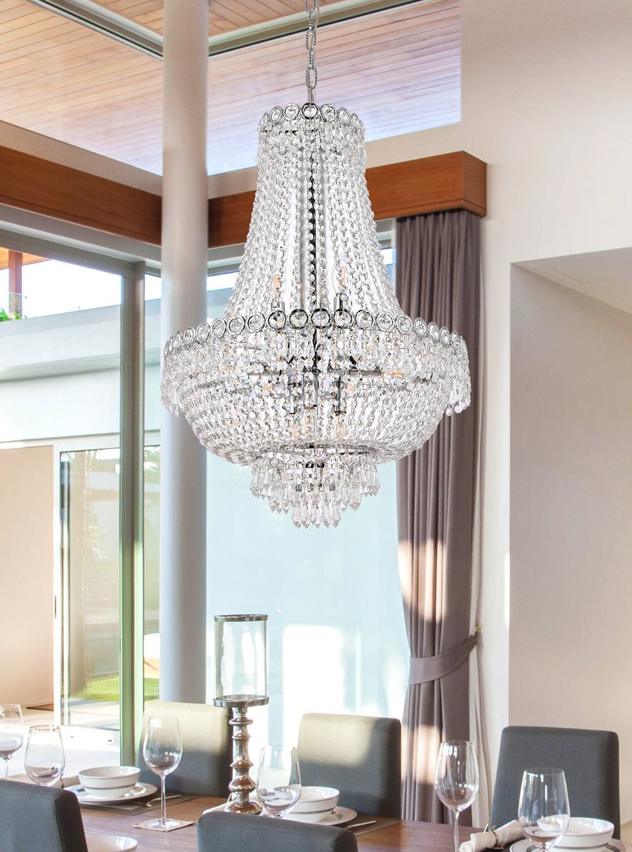 Century 12 light Chrome Chandelier Clear Royal Cut Crystal