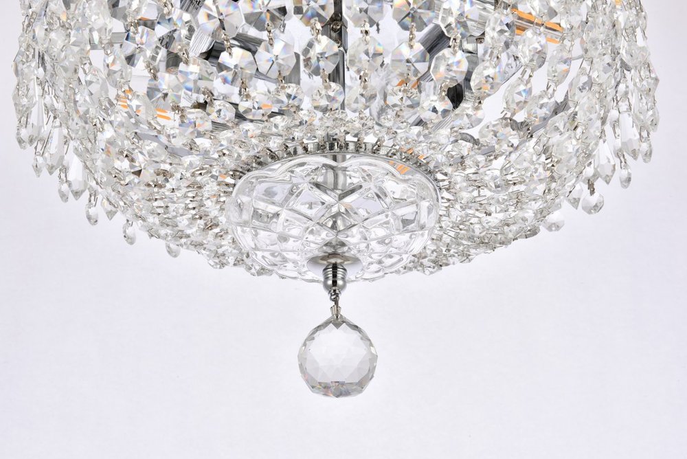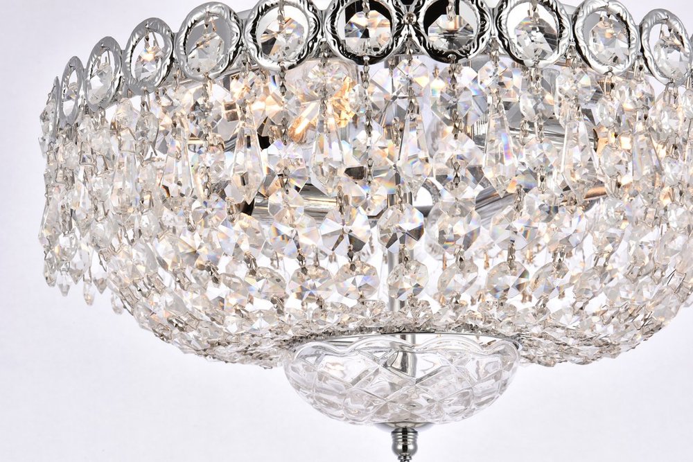 Century collection flush-mount fixtures, inspired by the classic elegance of 19th-century France, offer the versatility and adaptability to add splendor to many areas of your home. The light-refracting hemisphere designs abound in clear crystal octagons and prisms in a wide variety of trims. The candelabra bulbs give off the glowing hue of the frame, finished in gold or chrome.