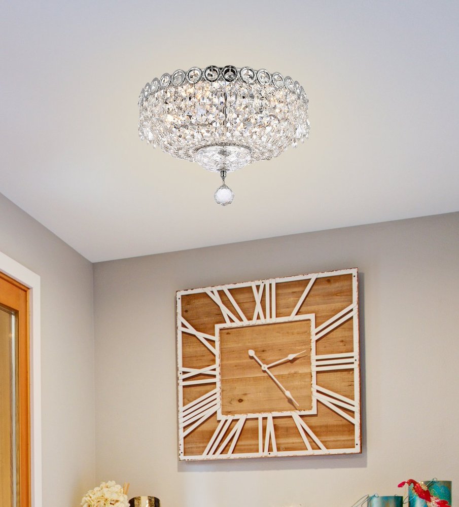 Century 4 light Chrome Flush Mount Clear Royal Cut Crystal