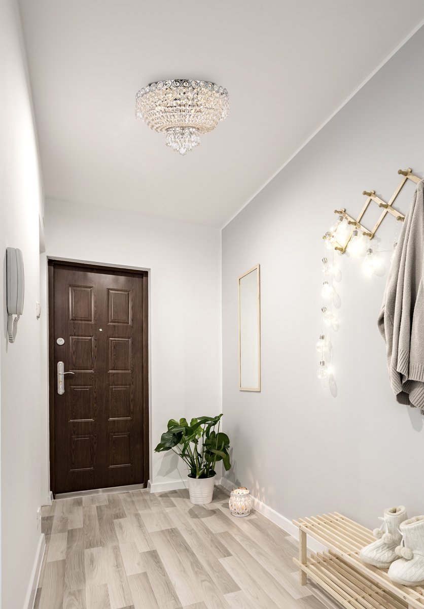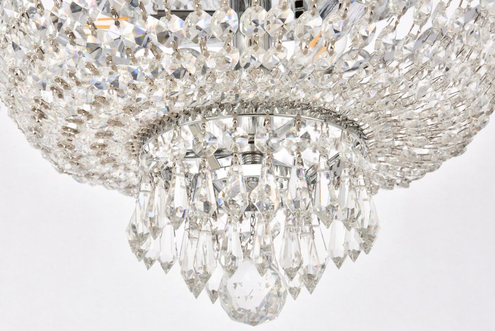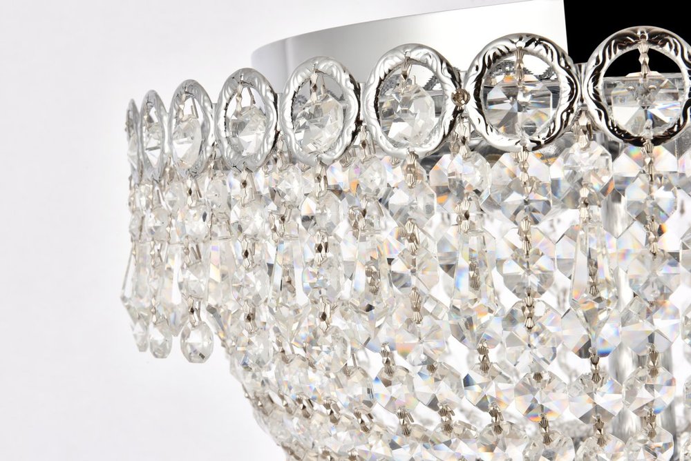 Century collection flush-mount fixtures, inspired by the classic elegance of 19th-century France, offer the versatility and adaptability to add splendor to many areas of your home. The light-refracting hemisphere designs abound in clear crystal octagons and prisms in a wide variety of trims. The candelabra bulbs give off the glowing hue of the frame, finished in gold or chrome.