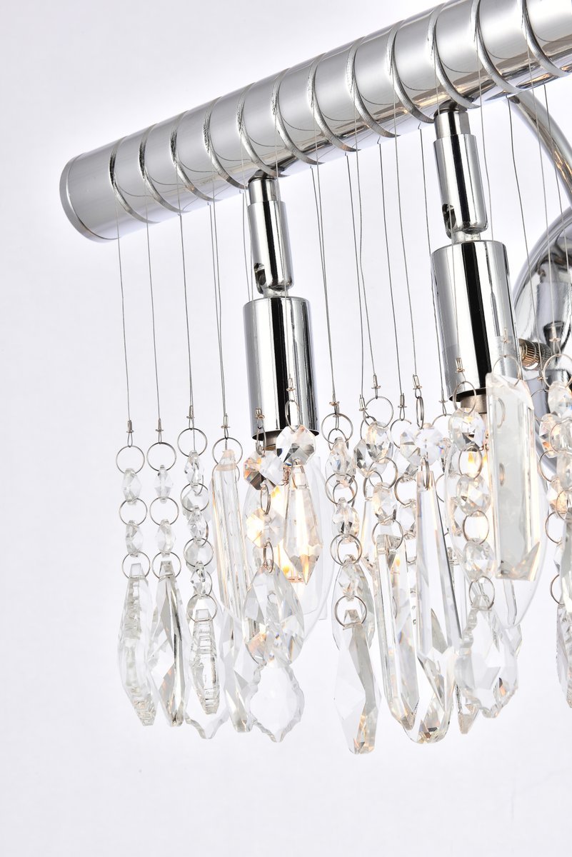 Like a Broadway show, the Chorus Line wall sconce dazzles in perfect synchronicity. The ensemble of royal-cut crystals dance together to bring a spectacular performance of light to your bedroom, dining room, or entryway. The profusion of crystal prisms, pears, balls, and beads appear to be dangling in the air, backlit with candelabra bulbs (not included) for an overall glow from end to end. This refined, yet jazzy number will get great reviews from your guests as you bring them a show of illumination they will never forget.