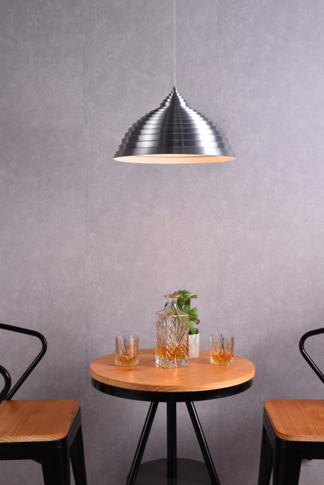 The ribbed, burnished nickel aluminum shade adds another touch of visual distinction