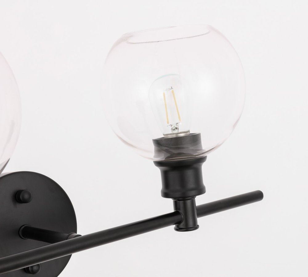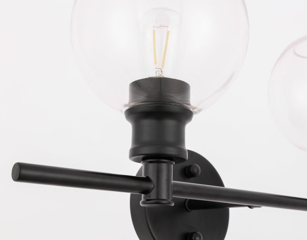 The Collier Collection of lights will be sure to have your guests admire your modern sense of style with the beautiful simplicity of its shape and form. The clean lines of the ball shaped shades create the juxtaposition of intricate simplicity, achieving a style that has both form and function. This wall lamp can be oriented facing up or down, but will always illuminate your room. Available in a brass, chrome, or black finish with either a clear or frosted ball glass shade, it is the perfect wall lamp to enhance your bathroom, foyer, or hallways, allowing you to always live a chic and fashionable lifestyle (light bulbs not included).
