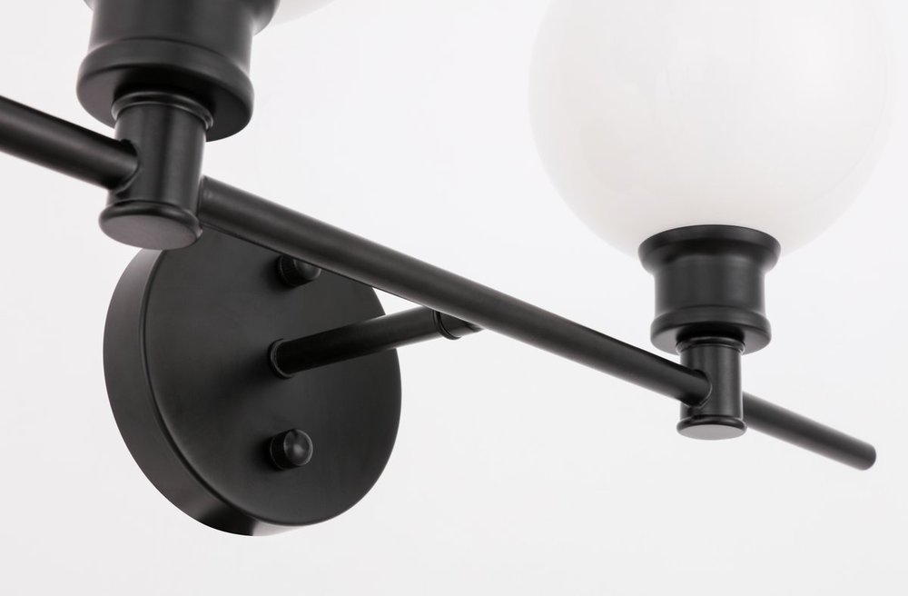 The Collier Collection of lights will be sure to have your guests admire your modern sense of style with the beautiful simplicity of its shape and form. The clean lines of the ball shaped shades create the juxtaposition of intricate simplicity, achieving a style that has both form and function. This wall lamp can be oriented facing up or down, but will always illuminate your room. Available in a brass, chrome, or black finish with either a clear or frosted ball glass shade, it is the perfect wall lamp to enhance your bathroom, foyer, or hallways, allowing you to always live a chic and fashionable lifestyle (light bulbs not included).
