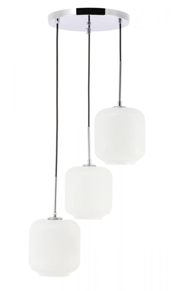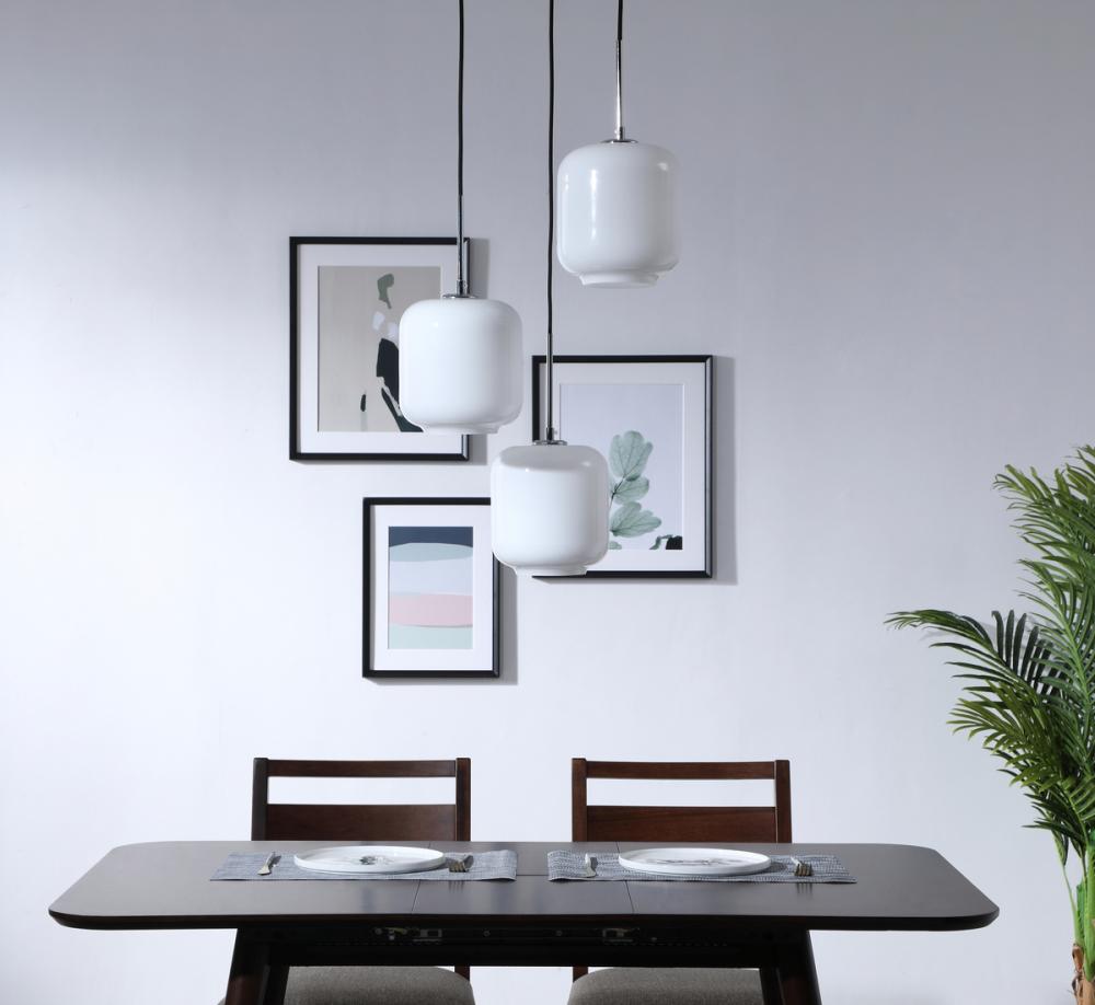 The Collier Collection of lights will be sure to have your guests admire your modern sense of style with the beautiful simplicity of its shape and form. The canopy supports three pendant lights that can be adjusted to different heights in order to create dramatic levels of lights and shadows. The pendant's clean lines created by the cords and curvature of the cylinder shades makes this the perfect lighting addition to any home that is in need of a chic modern flair. Available in a brass, chrome, or black finish, with either a clear or frosted cylinder glass shade, enhance your dining room, living room, or bedroom with the Collier Collection hanging pendant and live a chic and fashionable lifestyle, no matter where you are (light bulbs not included).