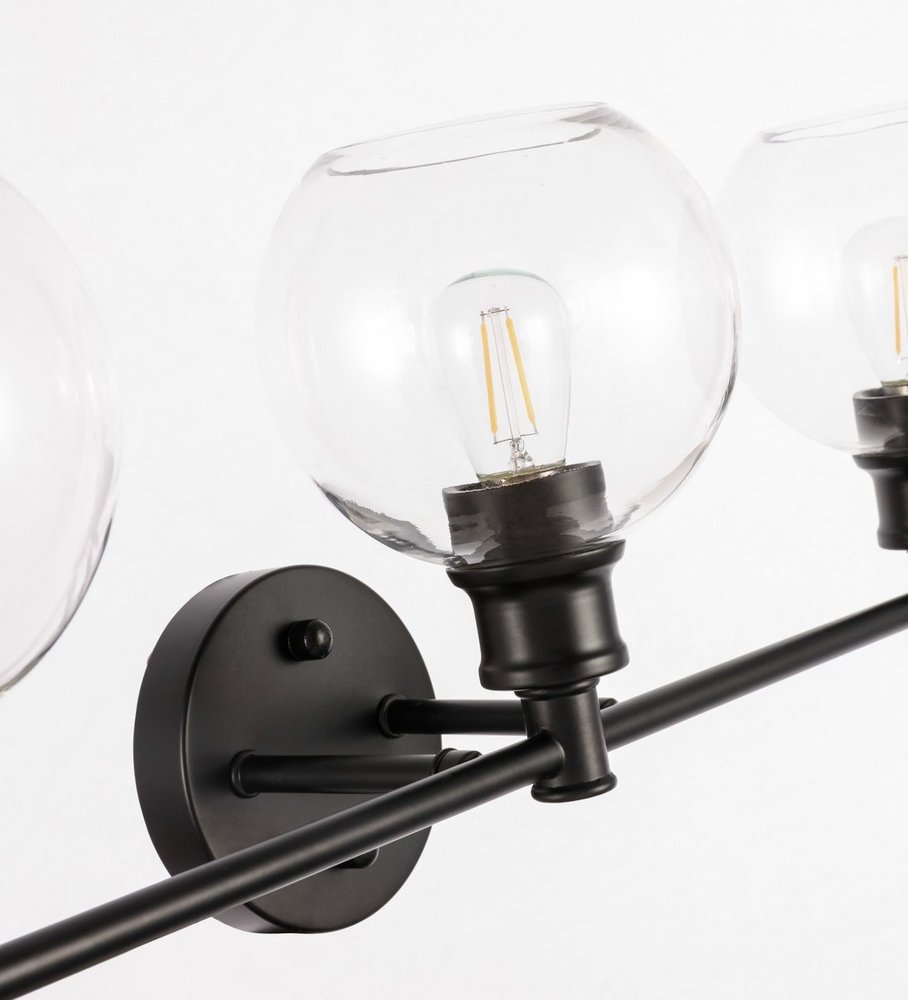 The Collier Collection of lights will be sure to have your guests admire your modern sense of style with the beautiful simplicity of its shape and form. The clean lines of the ball shaped shades create the juxtaposition of intricate simplicity, achieving a style that has both form and function. This wall lamp can be oriented facing up or down, but will always illuminate your room. Available in a brass, chrome, or black finish with either a clear or frosted ball glass shade, it is the perfect wall lamp to enhance your bathroom, foyer, or hallways, allowing you to always live a chic and fashionable lifestyle (light bulbs not included).