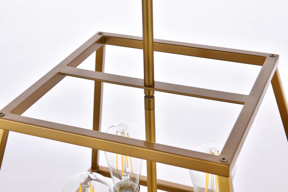 Features a four light open latern chandelier
