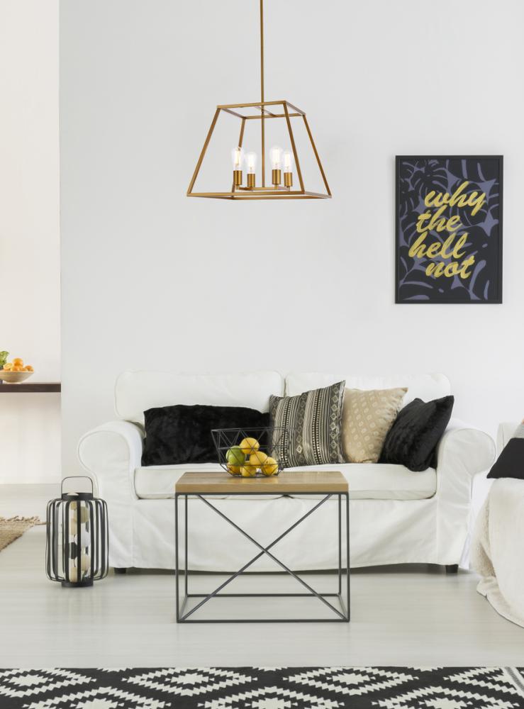 Sure to shine, this eye-catching lantern is crafted from iron, showcasing an open lantern silhouette that adds a dash of architectural appeal to the entryway, living room, or hall. Inside, four medium sockets hold 40 W maximum bulbs (not included). This hardwired design is also compatible with a dimmer switch, so you can set the mood as you please. Minimum hanging height of 21.4 inches and maximum hanging height of 61.4 inches. The overall height is adjustable, comes with one set of 6 inch rod, two sets of 12 inch rod, and one set of 16 inch rod.