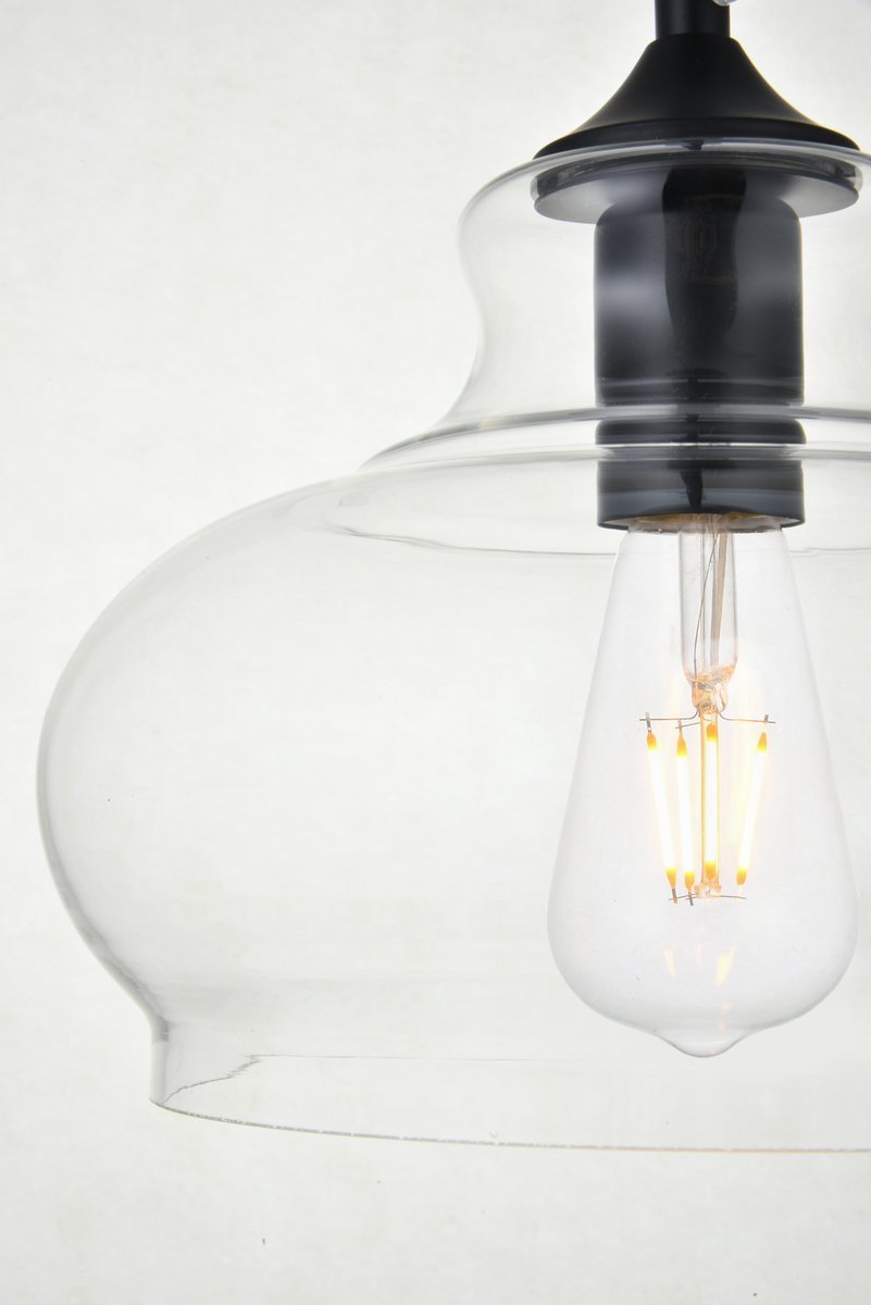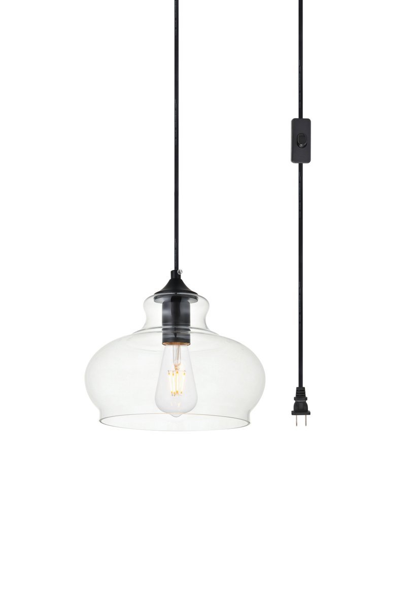 Elegant LDPG2244BK - Destry 1 Light Black plug-in Pendant With Clear Glass