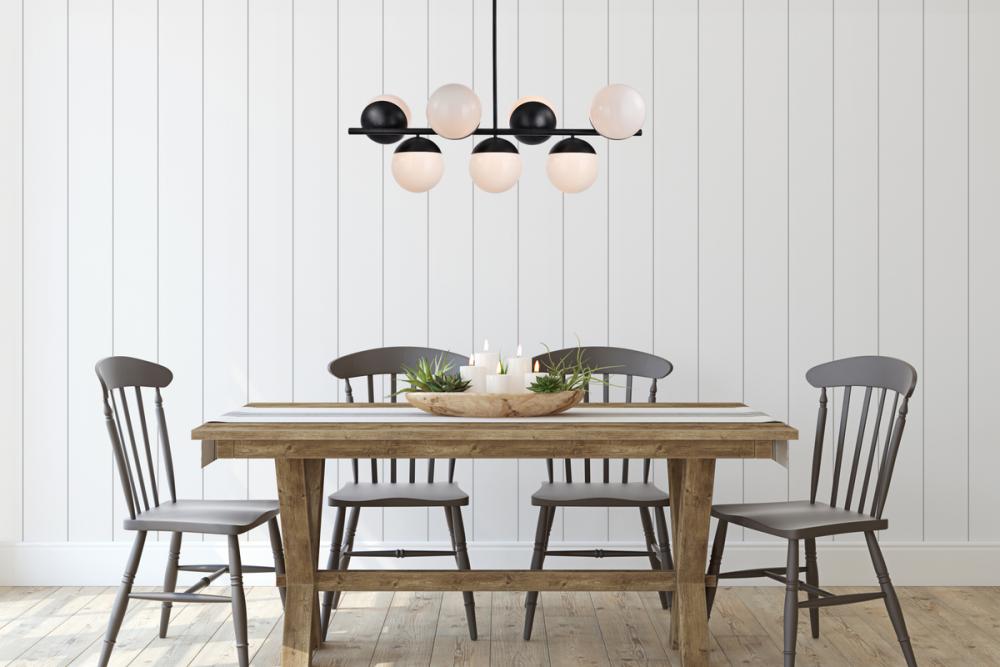 Refined style with a practical design, Eclipse hanging pendant lamps bring cosmopolitan sophistication anywhere, especially to an entryway, office, bathroom, bedroom, or kitchen. The smooth iron frame features a disk-shaped canopy and comes in a black finish. An adjustable black cord allows you to vary the hanging height from 17 to 57 inches. A touch of color on top of the frosted white spherical glass shade brings character to this classic style. Living in the big city has never been this easy.