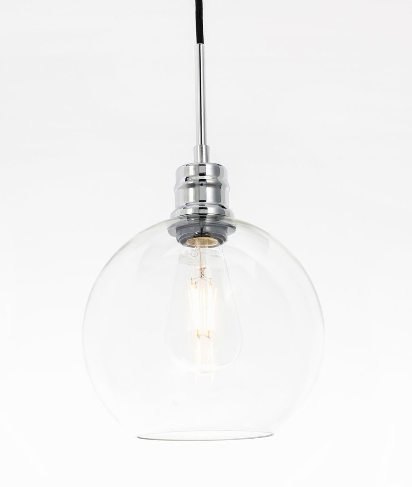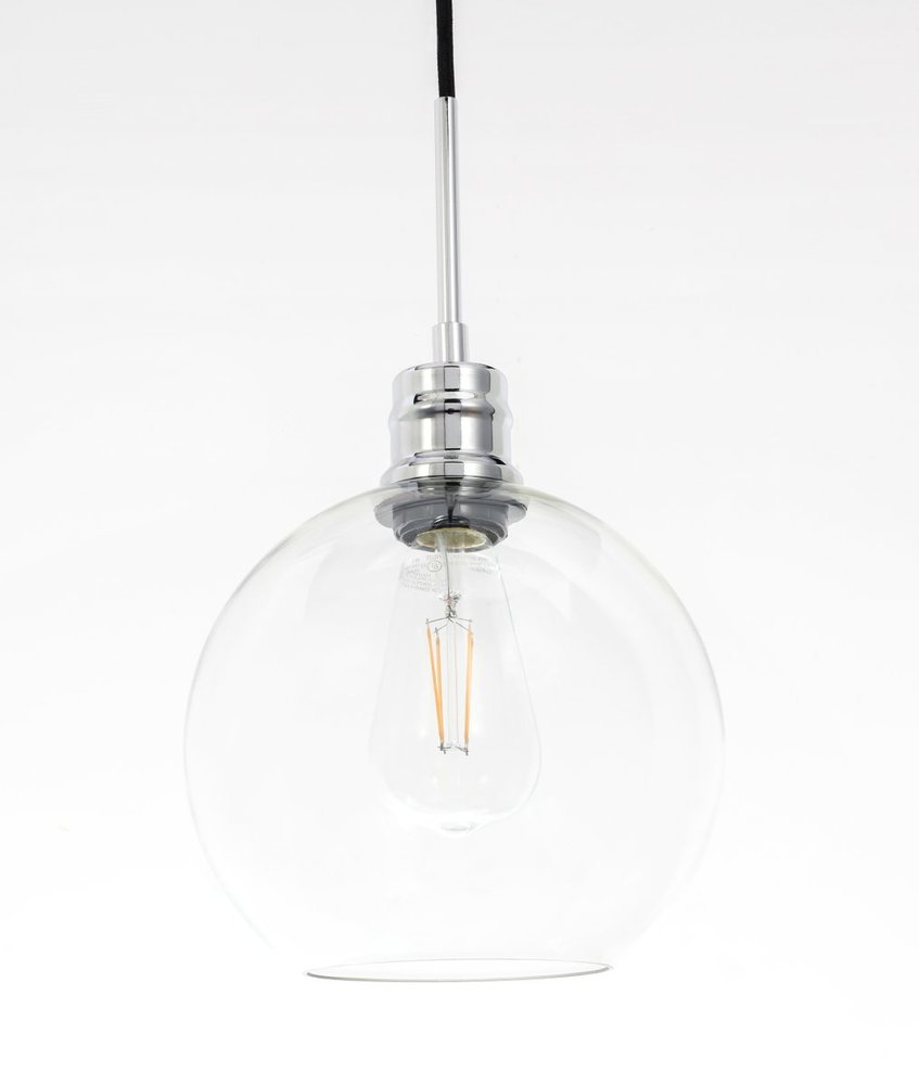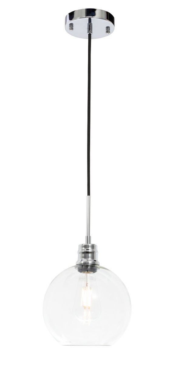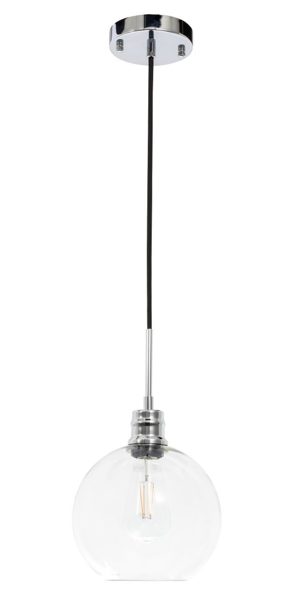 Clean lines and modern whimsy--that's the Emett Collection of pendant lamps. Its Single light makes it perfect for any small apartment or room space, but its also a perfect addition to any larger rooms that requires illumination, such as a dining room or living room. Available in a black, chrome, or brass finish with a round clear glass shade, it won't be too hard to fit this versatile lighting fixture in your home (light bulbs not included).