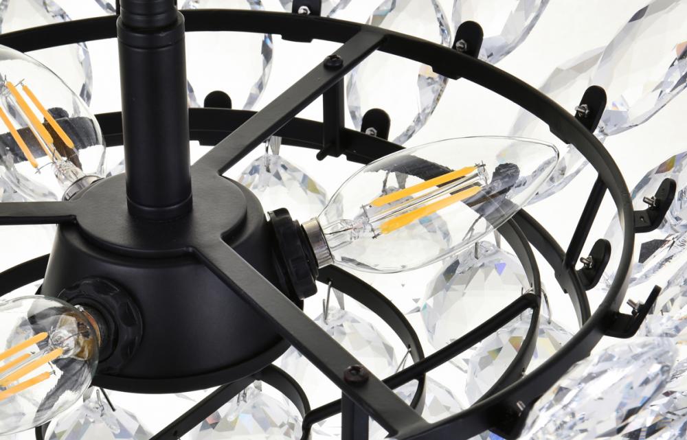 Tiers of clear multi-faceted crystals reflect the soft glow of candelabra bulbs