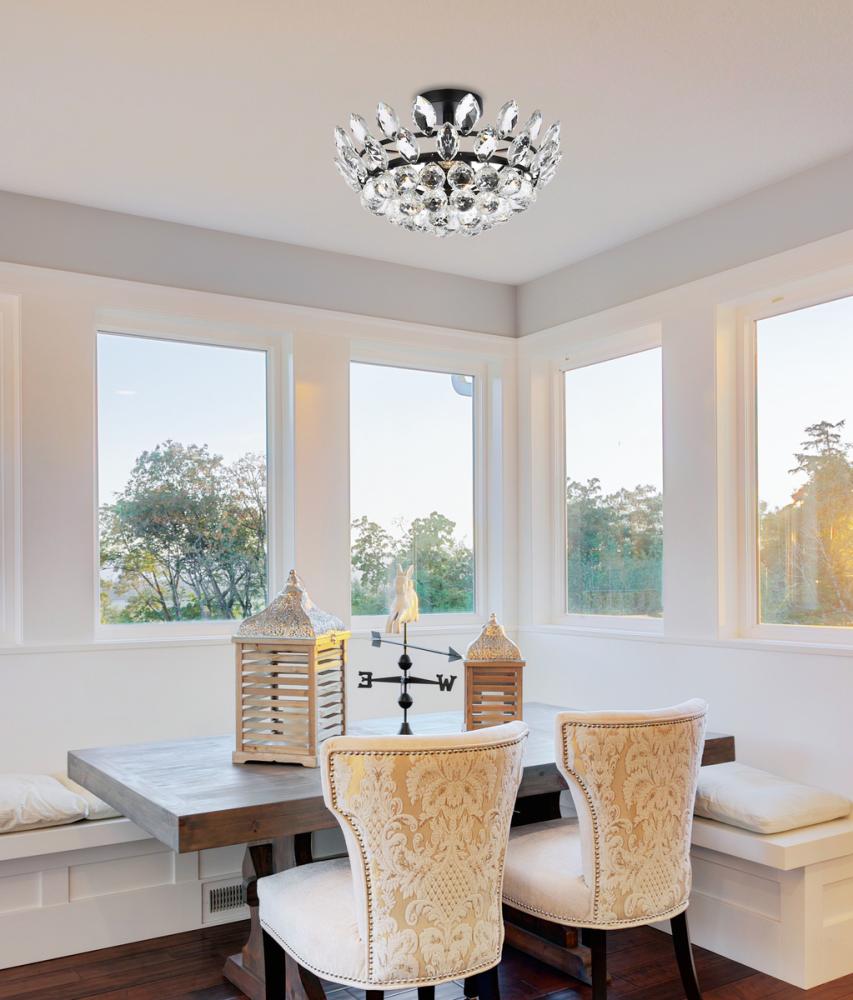 Install this flush mount in any room to give an elegant look. This stunning light features hand painted finish and clear brillant crystals which gives a classy look. Set a cozy atmosphere when you switch on this dazzling fixture and captivate your guests.
