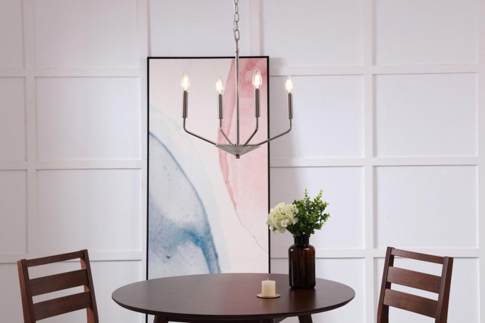 The Enzo Collection pendant showcases the sublime unity of the antique and the modern. This dramatic fixture features four arms that dutifully holds lights in solemn beauty to send radiance and brilliance across your room. Available in a chrome, brass, or two-toned black and brass finish, it is a wonderful lighting piece that will add interest and style to any room in your home--whether it is your living room, dining room, or foyer (light bulbs not included).