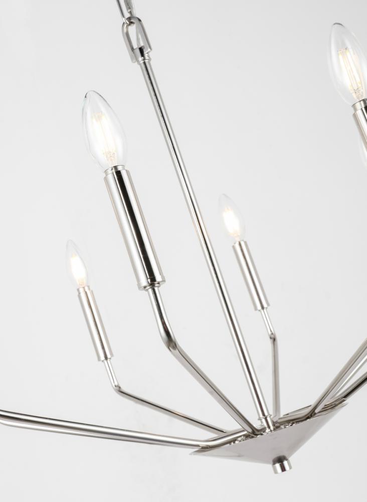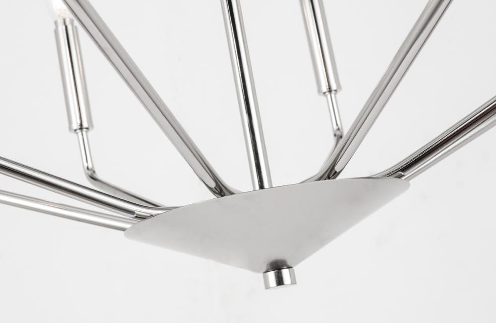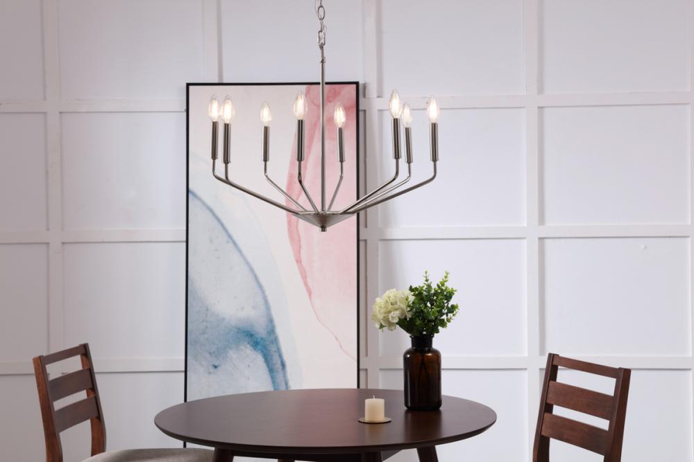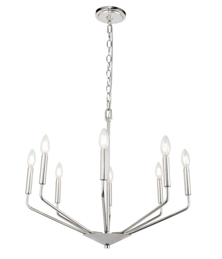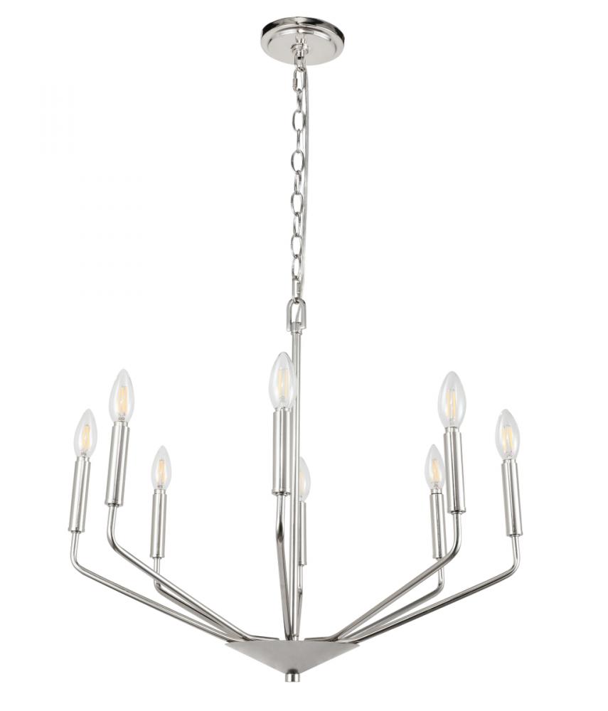 The Enzo Collection pendant showcases the sublime unity of the antique and the modern. This dramatic fixture features eight arms that dutifully holds lights in solemn beauty to send radiance and brilliance across your room. Available in a chrome, brass, or two-toned black and brass finish, it is a wonderful lighting piece that will add interest and style to any room in your home--whether it is your living room, dining room, or foyer (light bulbs not included).