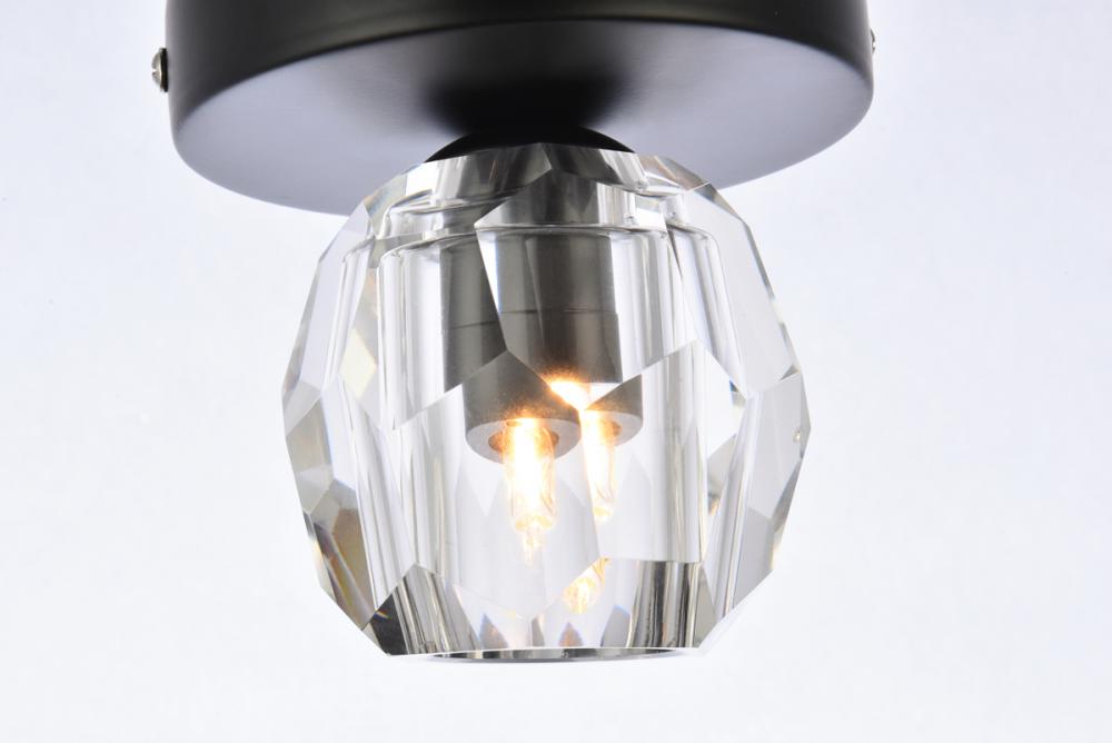 Each lamp is encased in a solid faceted clear crystal diffuser