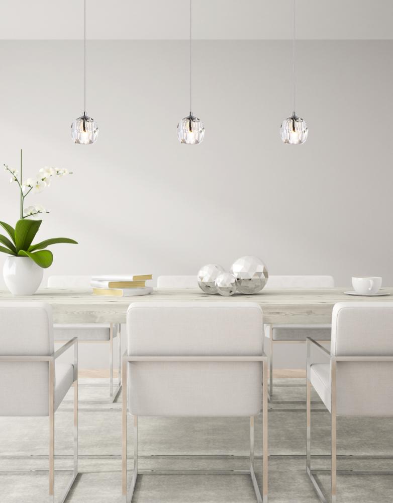Like enchanting bubbles of air surfacing from the fathoms of the deep sea, the Eren contemporary hanging pendant adds lighting with richness and grace. The layering of clear crystal globes offer softened, harmonious light to match a variety of home décor. Creating an environment of sophistication, this beautiful hanging pendant adds drops of magic to express your refined style.