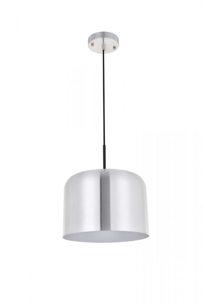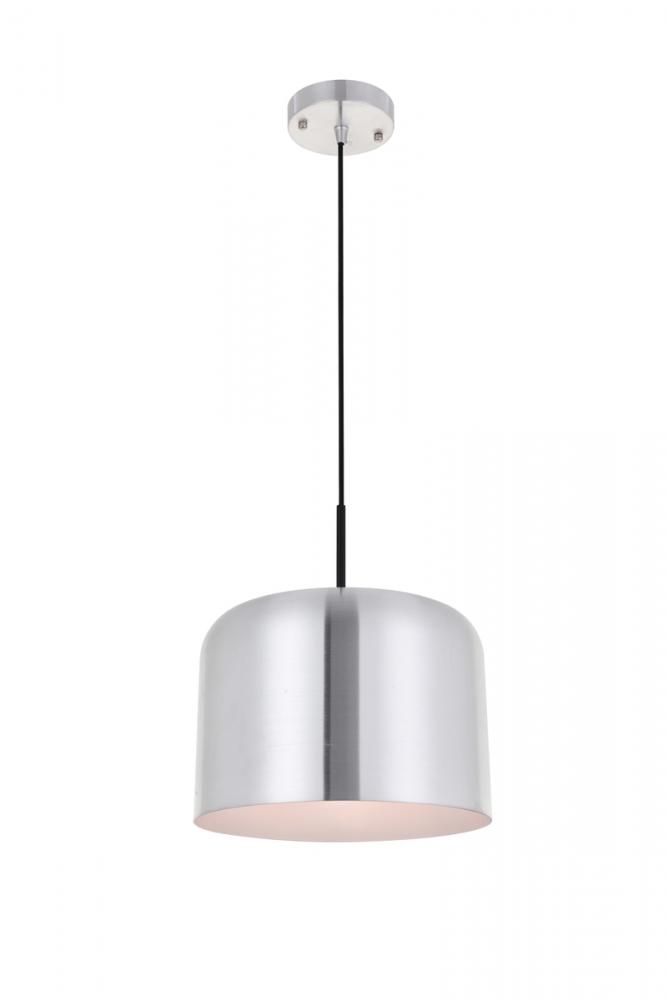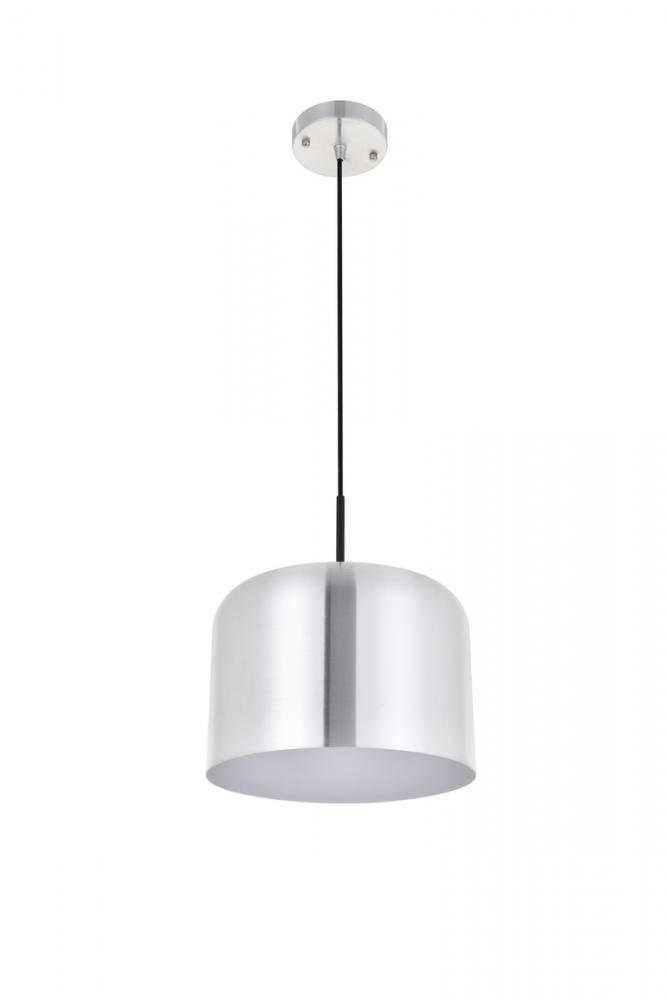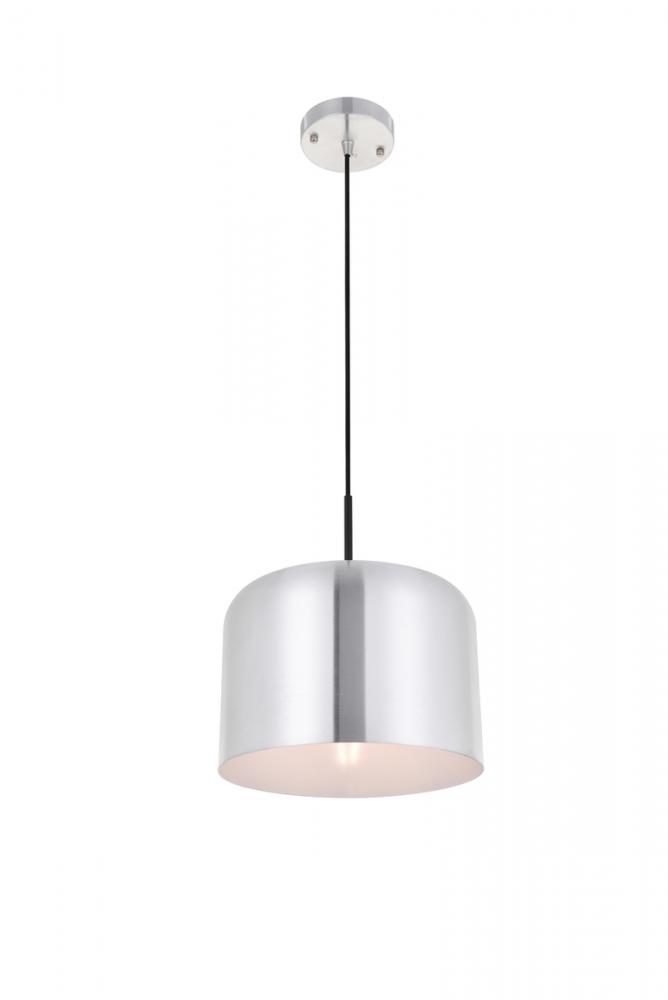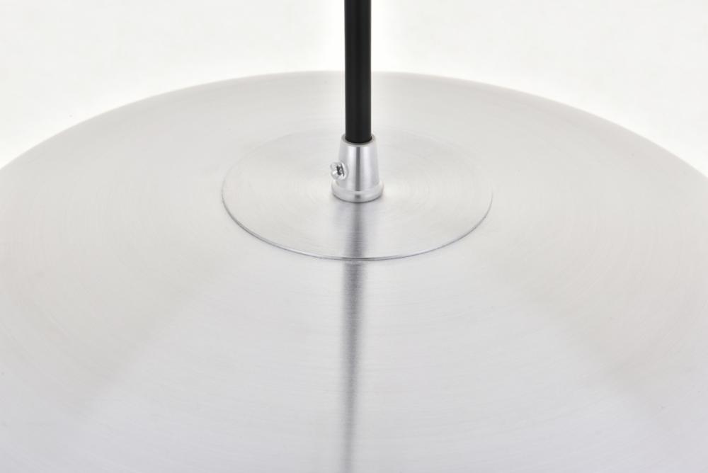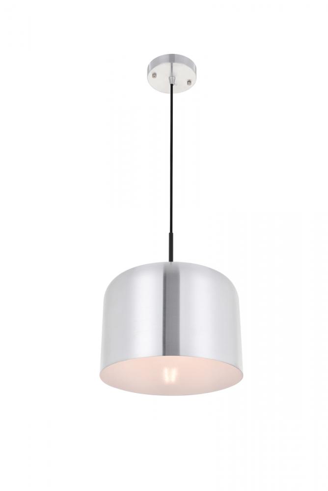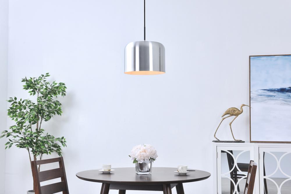Cylinder shaped brushed nickel finish aluminum shade with white finish interior