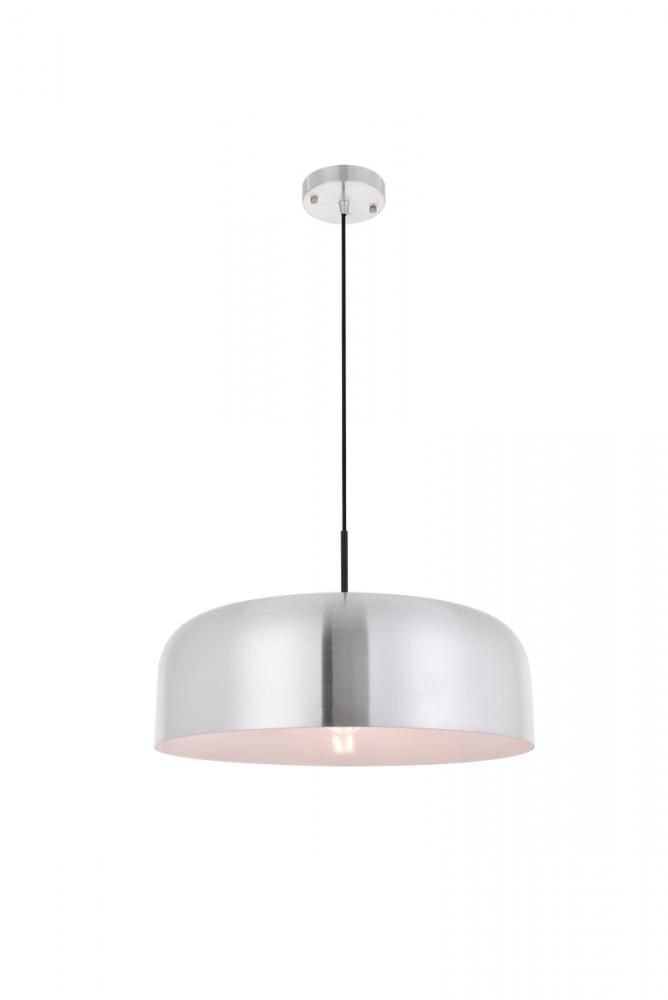 Cylinder shaped brushed nickel finish aluminum shade with white finish interior