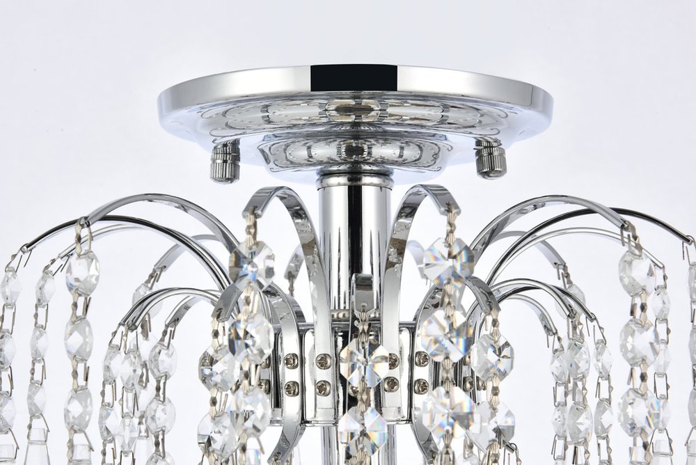 Tap into the soothing appeal of flowing water with Falls flush-mount lighting fixtures. Gleaming chrome- or gold-finished tendrils spout up from the center of the frame into an arch that cascades gently downward, dangling clear crystal octagons and prisms in a variety of trims. The Falls collection was inspired by nature and is the perfect complement to rooms with aquariums, plants, and water fountains, as well as anywhere you wish to create a relaxing mood.