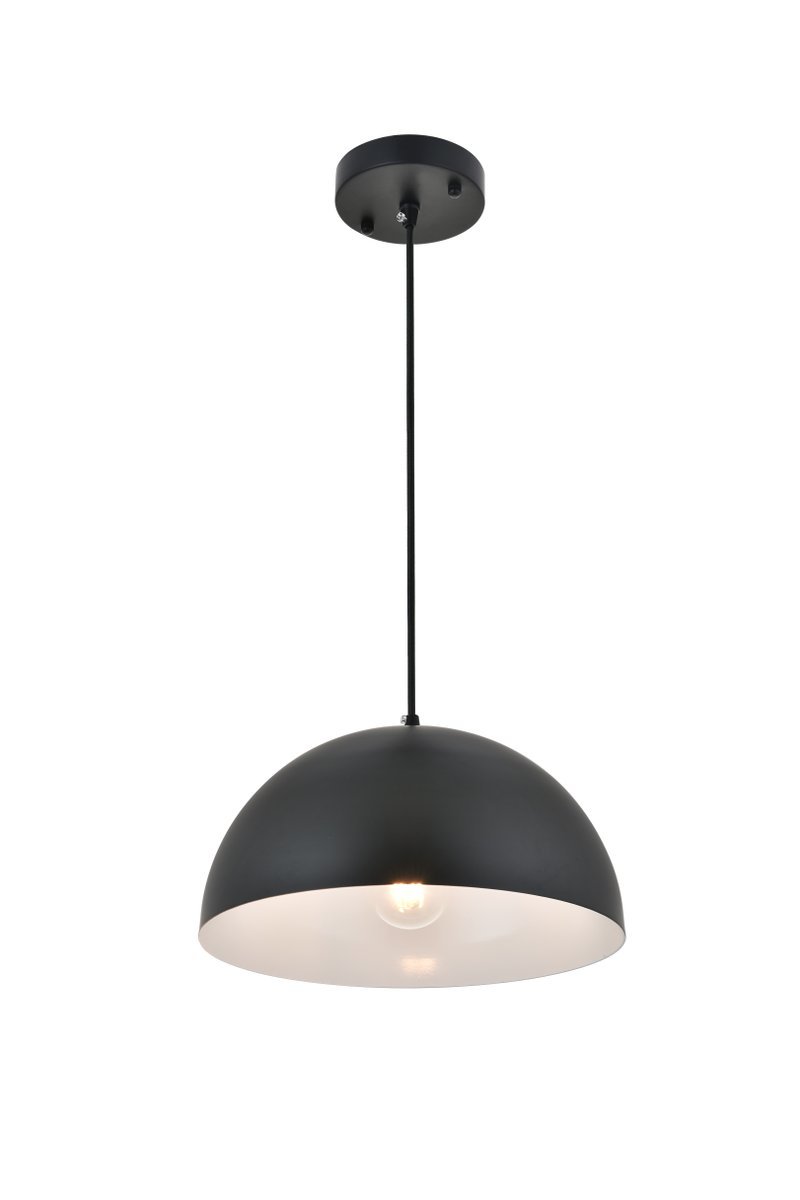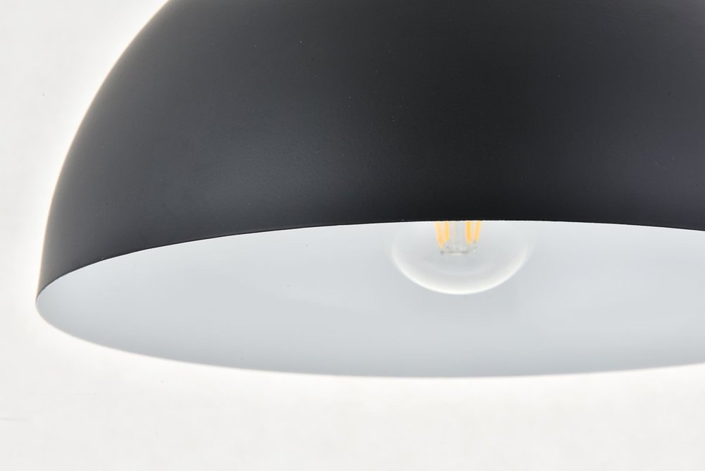 The Forte collection pendant lamp will surely create a modern and bold center point for any room. The hemispherical shade with a black finish exterior and white finish interior creates a dauntless personality that will illuminate any darkness with its reliable light. Without fail, Forte will excel at brightening your home, whether it's at your entryway, living room, or dining room.