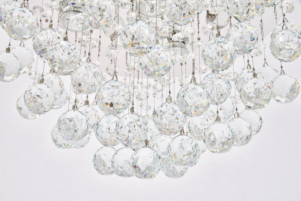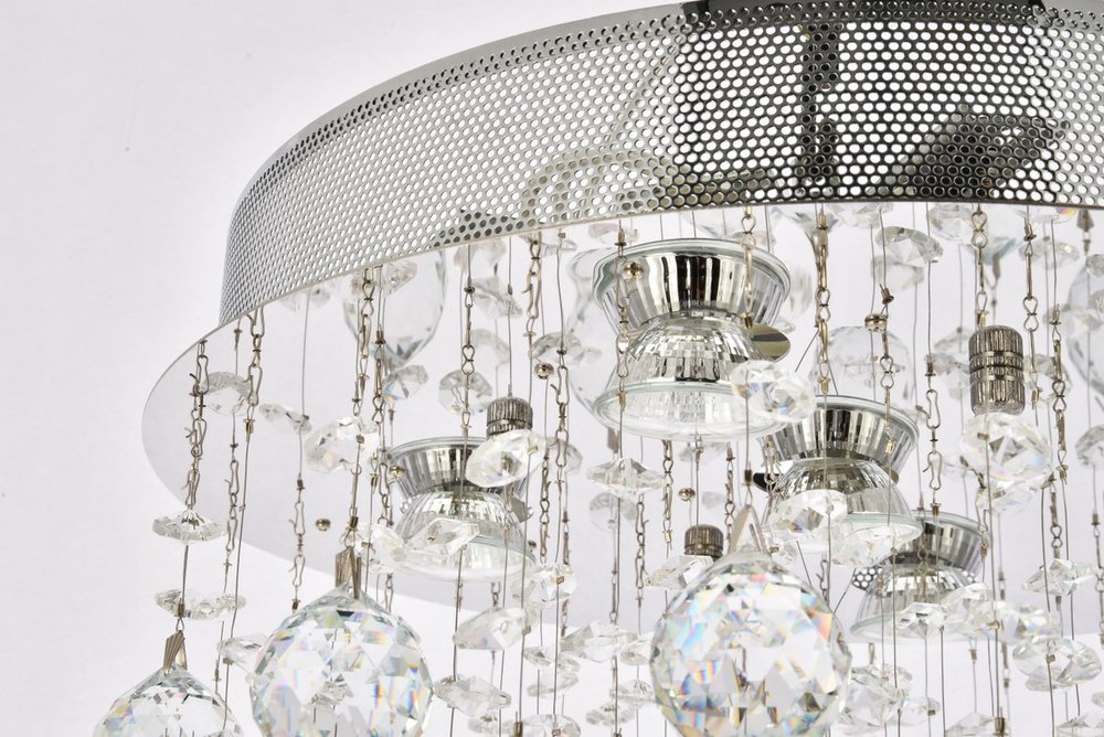 The Galaxy collection is brilliantly distinctive for its flush-mount fixtures’ many dazzling crystals of various sizes and shapes suspended and gently spinning in space. Illumination from the chrome-finish base lights up a room with both direct light emitting downward and refracted radiance from the multi-faceted crystals below. Available in a choice of crystal trims.