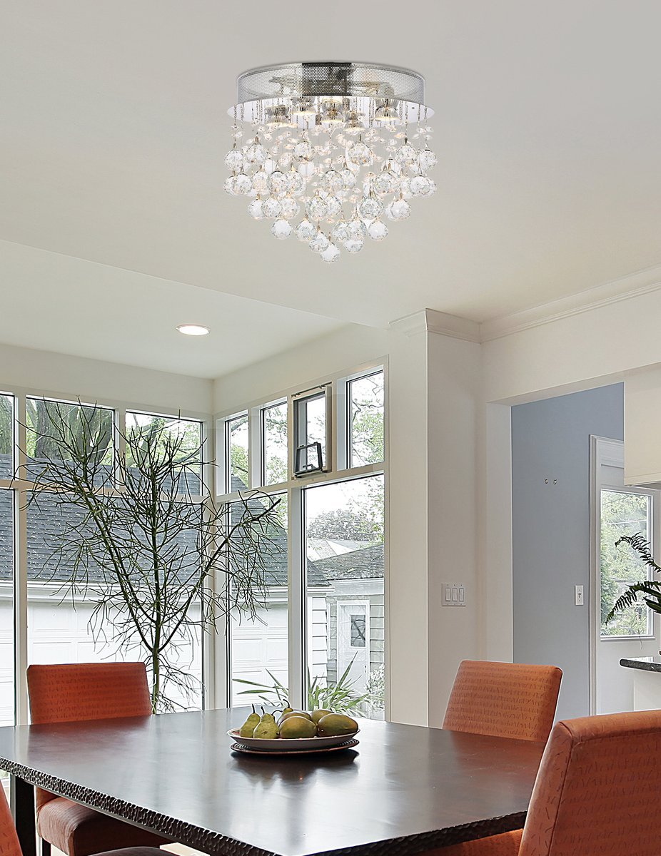 Galaxy 5 light Chrome Flush Mount Clear Royal Cut Crystal