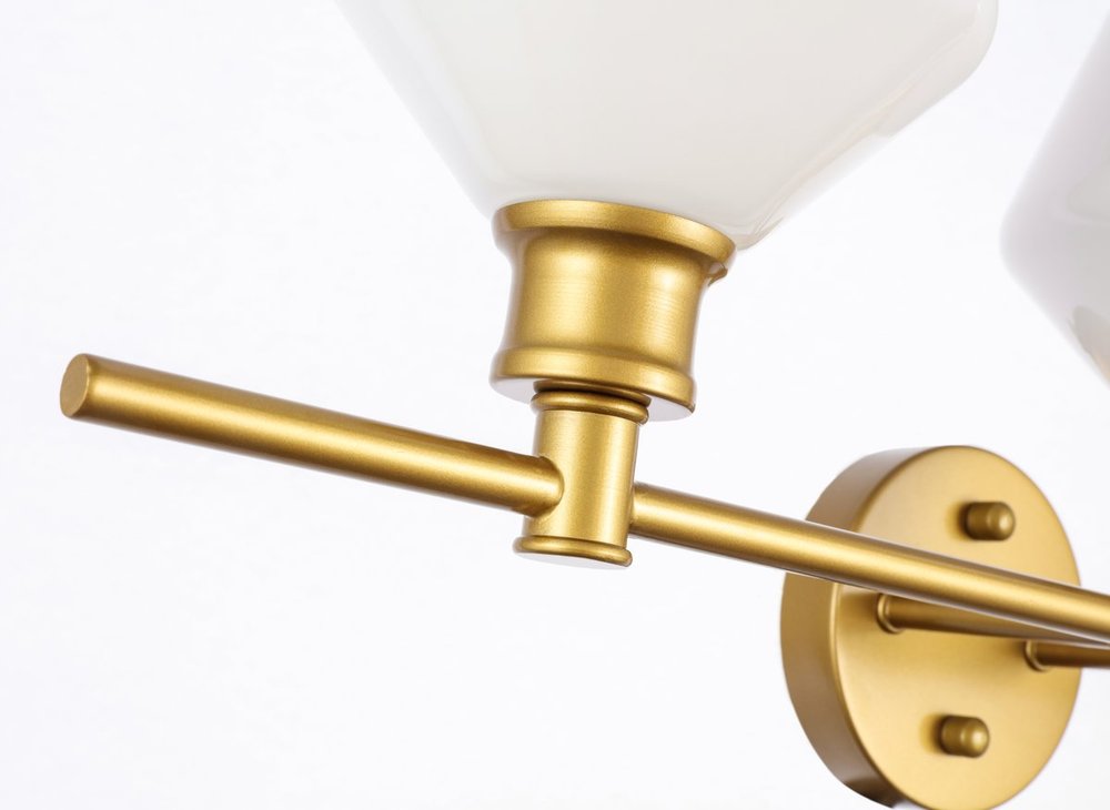 The Gene Collection of lights will be sure to have your guests admire your modern sense of style with the beautiful simplicity of its shape and form. The clean lines of the rhombus shaped shades create the juxtaposition of intricate simplicity, achieving a style that has both form and function. This wall lamp can be oriented facing up or down, but will always illuminate your room. Available in a brass, chrome, or black finish with either a clear or frosted rhombus glass shade, it is the perfect wall lamp to enhance your bathroom, foyer, or hallways, allowing you to always live in sleek contemporary style (light bulbs not included).