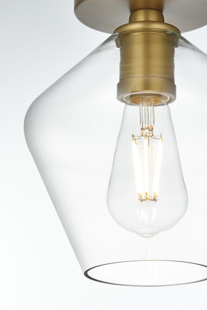 Features a clear glass shade, offering bright, unobstructed light and a clean, modern look.
