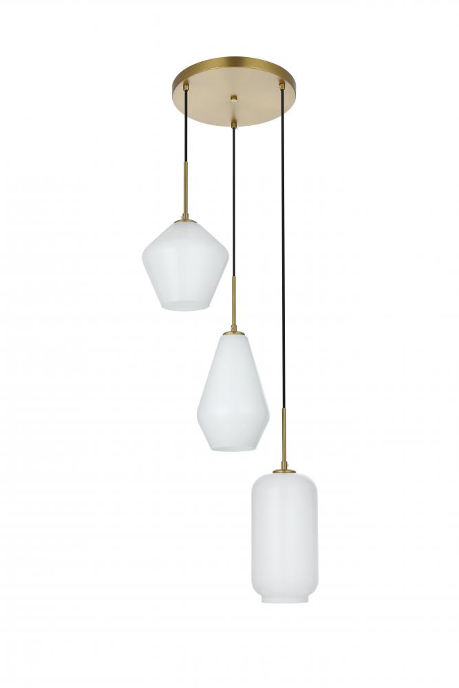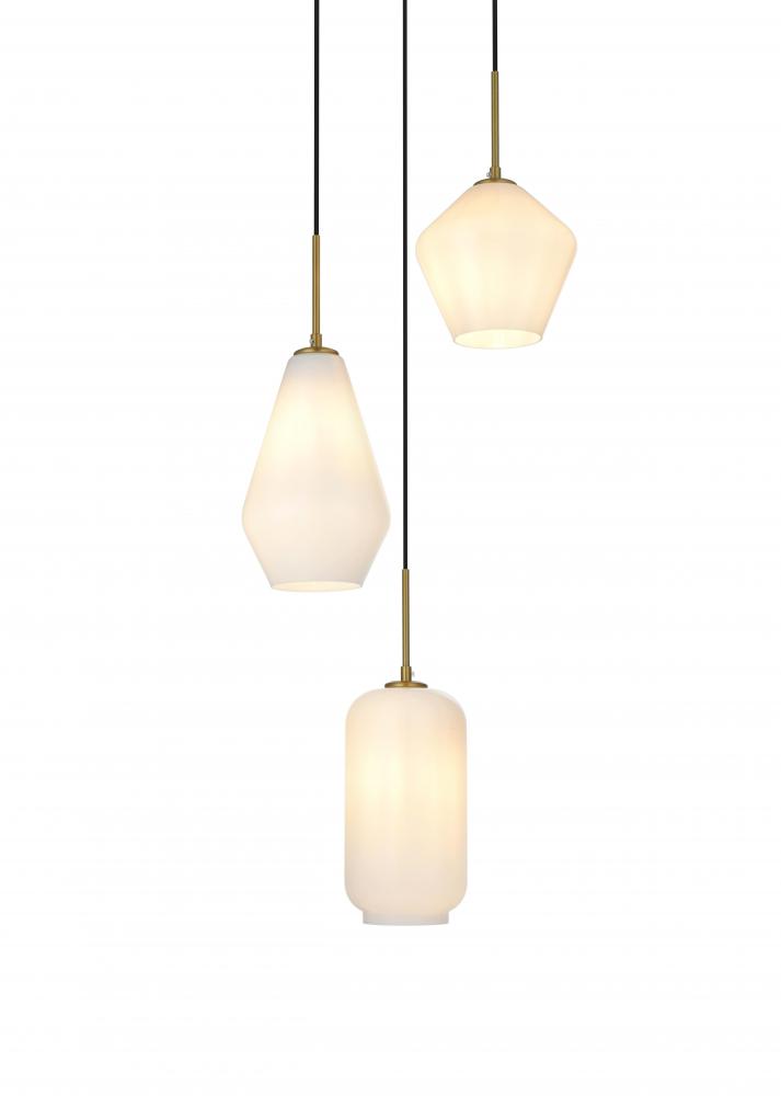 The Gene Collection of lights will be sure to have your guests admire your modern sense of style with the beautiful simplicity of its shape and form. The canopy supports three pendant lights that can be adjusted to different heights in order to create dramatic levels of lights and shadows. The pendant's clean lines created by the cords and diamond shaped shades makes this the perfect lighting addition to any home that is in need of a chic modern flair. Available in a satin gold, brass, chrome, or black finish, with either a clear or frosted diamond glass shade, enhance your dining room, living room, or bedroom with the Gene Collection hanging pendant and live in sleek contemporary style (light bulbs not included).