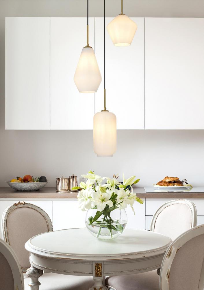 Features a frosted white glass shade, delivering a soft, diffused light for a warm, inviting atmosphere.
