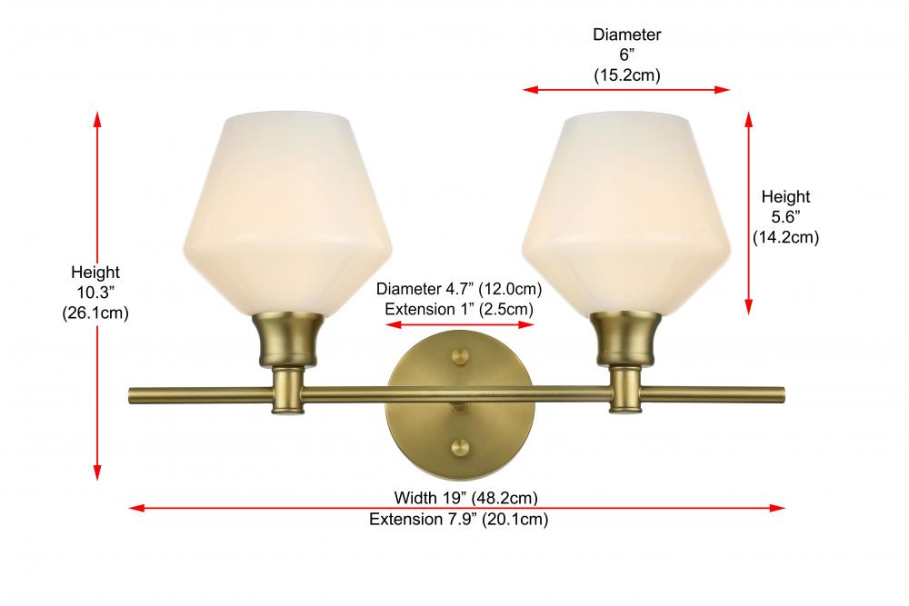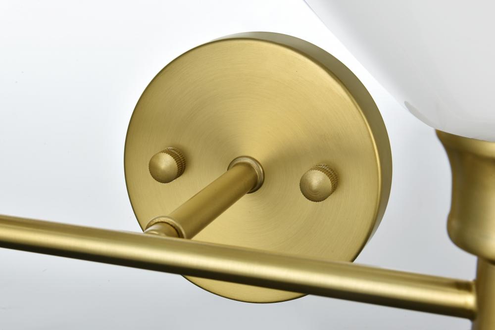 Enhance your living space with this versatile and modern wall sconce. Available in satin gold, chrome, black, and brass finishes, this fixture brings a touch of luxury to any room. The wall sconce features a pair of uniquely shaped, flared frosted white glass shades that deliver a beautiful, ambient glow, whether mounted upwards or downwards. Crafted from durable iron and glass, it combines strength with style, and the clean lines of the round backplate and horizontal arm create a contemporary aesthetic. Designed for hardwired installation, this fixture uses E26 standard sockets, allowing you to choose the ideal bulbs for your setting. This wall sconce is the perfect blend of form and function, ready to add a stylish and inviting touch to your home.