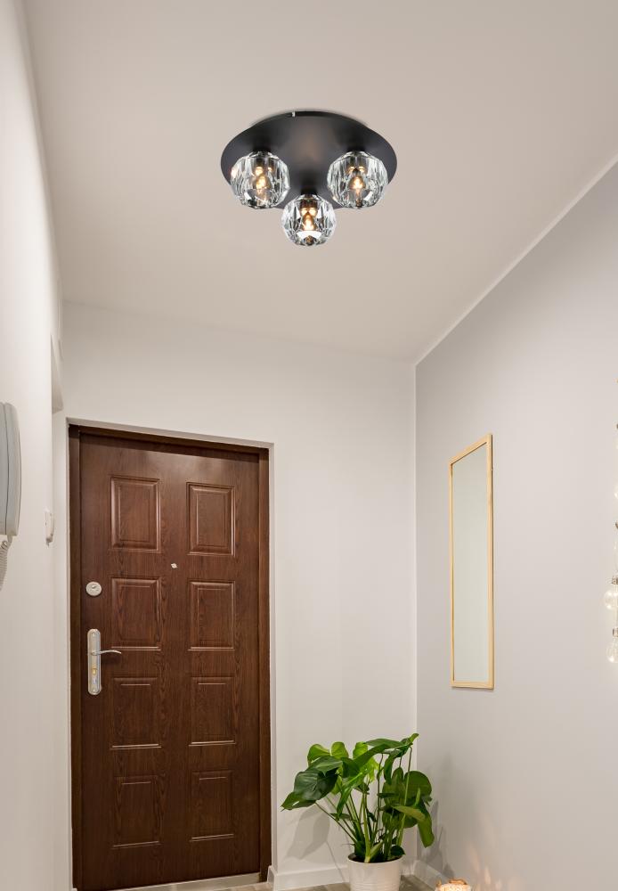 Crafted from iron metal and crystal, it features a round ceiling canopy with solid K9 crystal balls for a modern and linear look. Each 20W G9 bulb ( not included) is diffused by a faceted clear crystal ball giving the fixture a touch of glam inspiration. This work of art will add an artful focal point to your entryway, dining room, kitchen, or office. Evoking a sophisticated and timeless aesthetic to any space and will be an instant conversation started with its finely faceted crystal sphere which is polished by hand to reflect and refract light. Available in three different finishes in gold, chrome, and black.