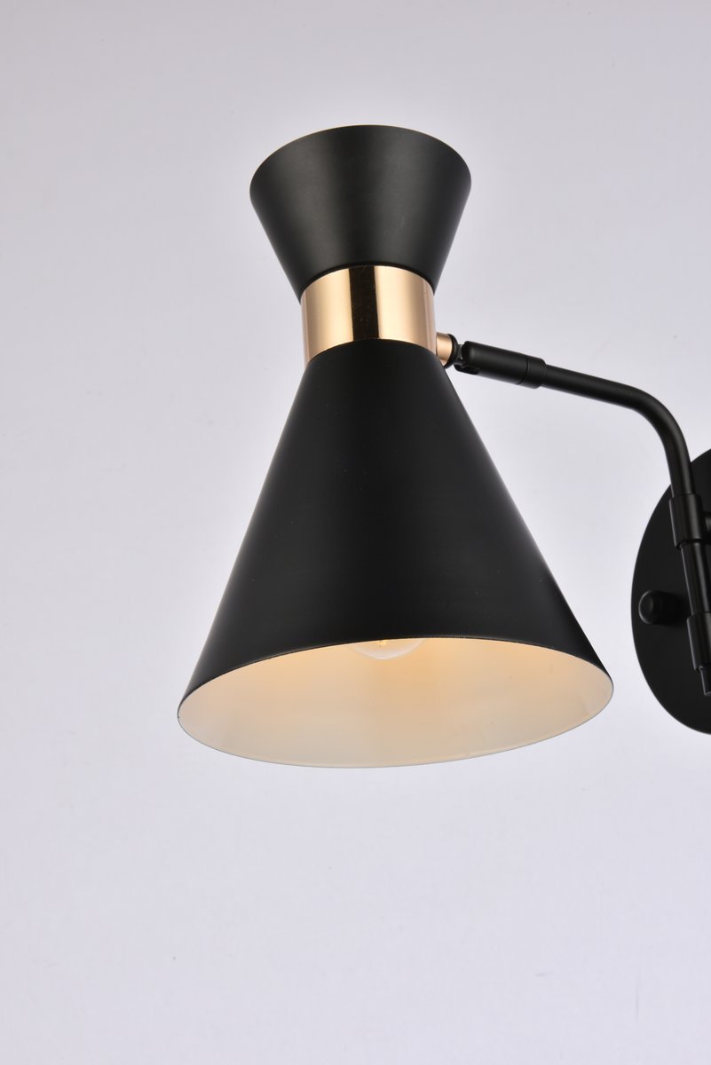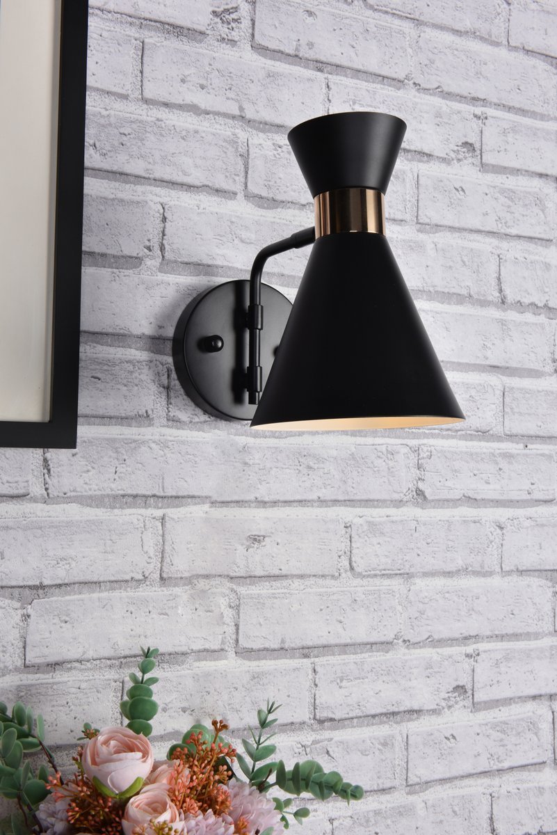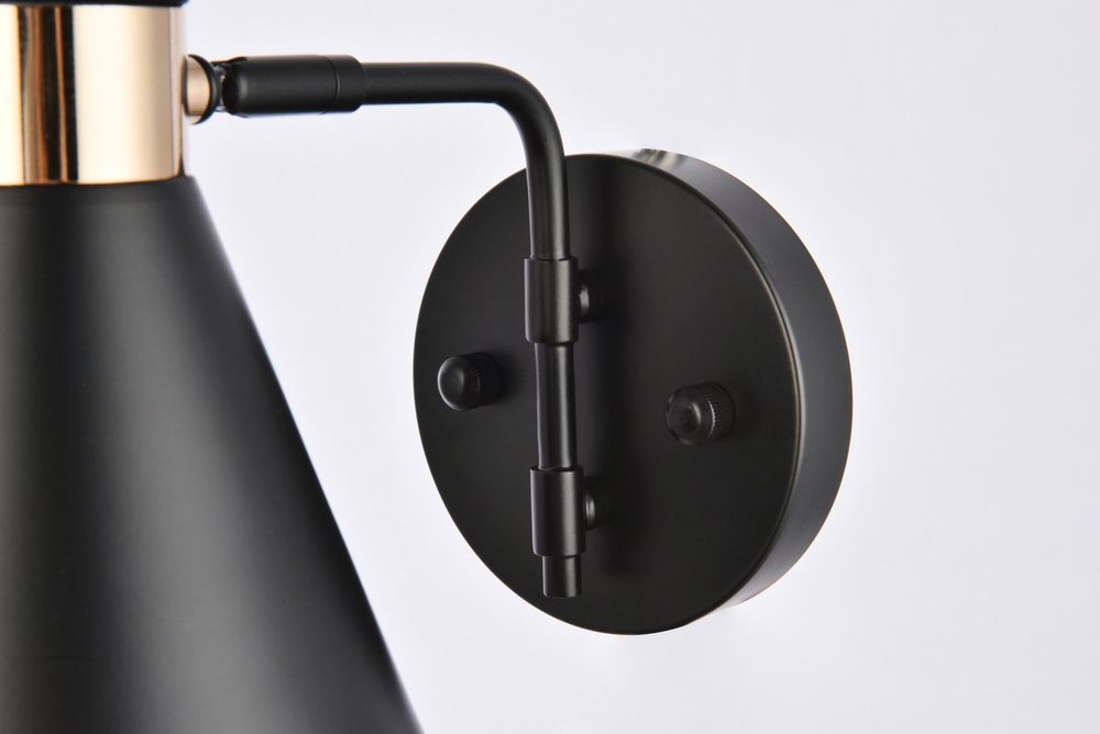 Illuminate your space with the brilliance of the Halycon Collection wall sconce. The cone dome creates a unique lighting and includes a dimmable feature that creates a calm mood. Available in a black and/or brass finish, this minimalistic piece will fit perfectly into your living room or bedroom. This product comes in a five or six inch length and requires one E26 socket. Light bulbs not included.