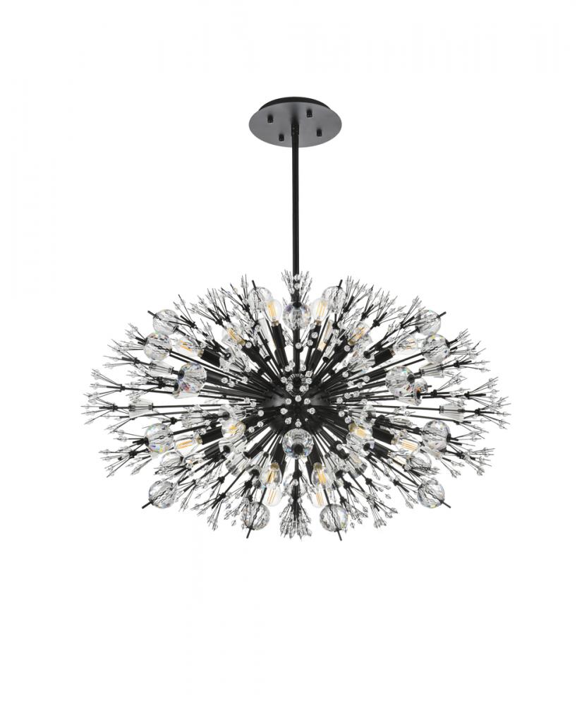 Features a striking sputnik-style shape with sparkling crystal accents for a luxurious modern touch.