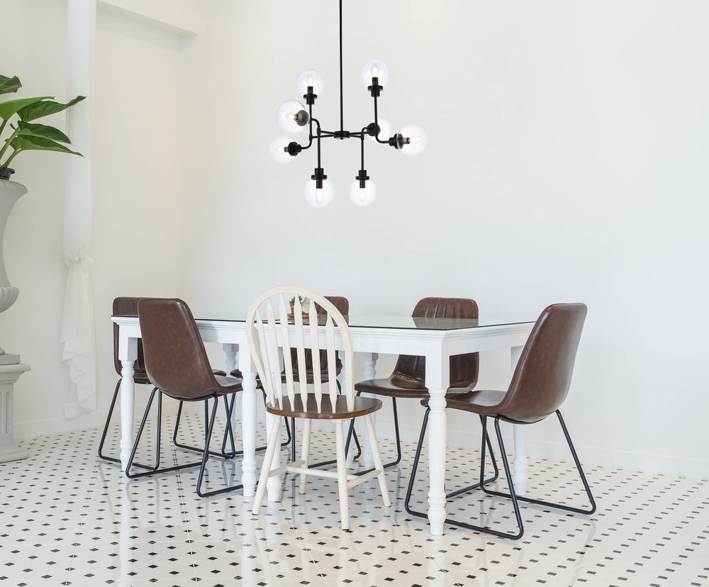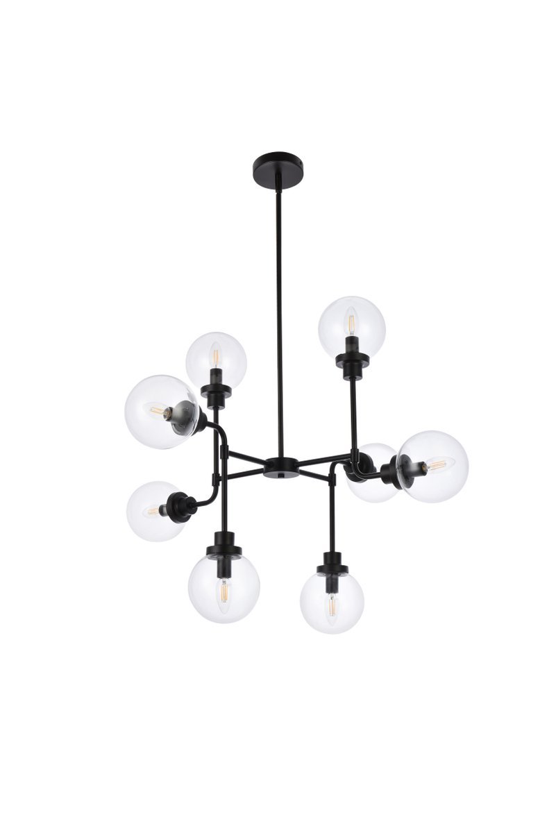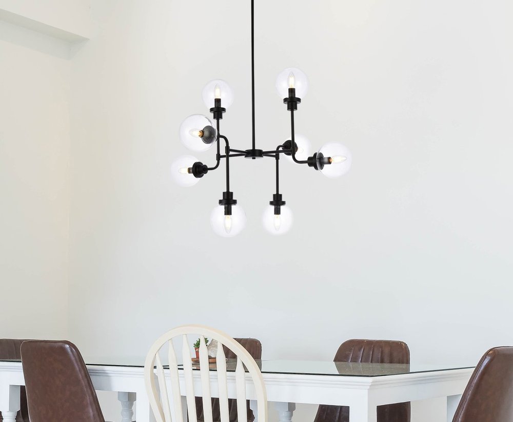 Hanson 8 lights pendant in black with clear shade is the perfect fixture for over a kitchen island, over a dining table, or use in any room to make a big statement. This pendant elevates the look of any space.