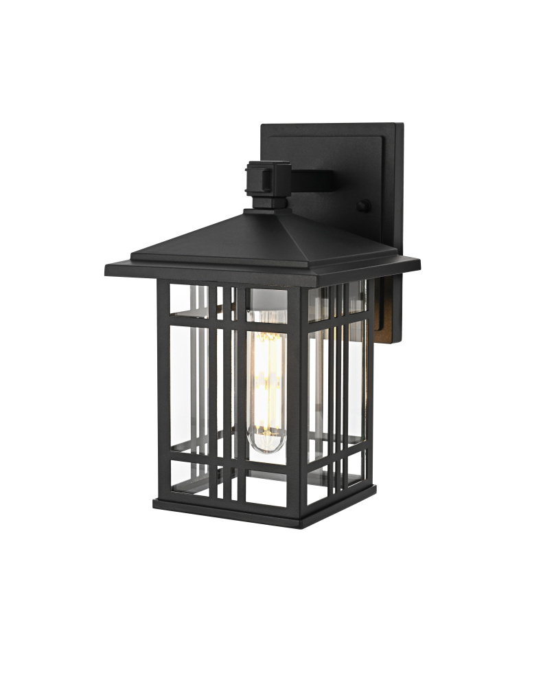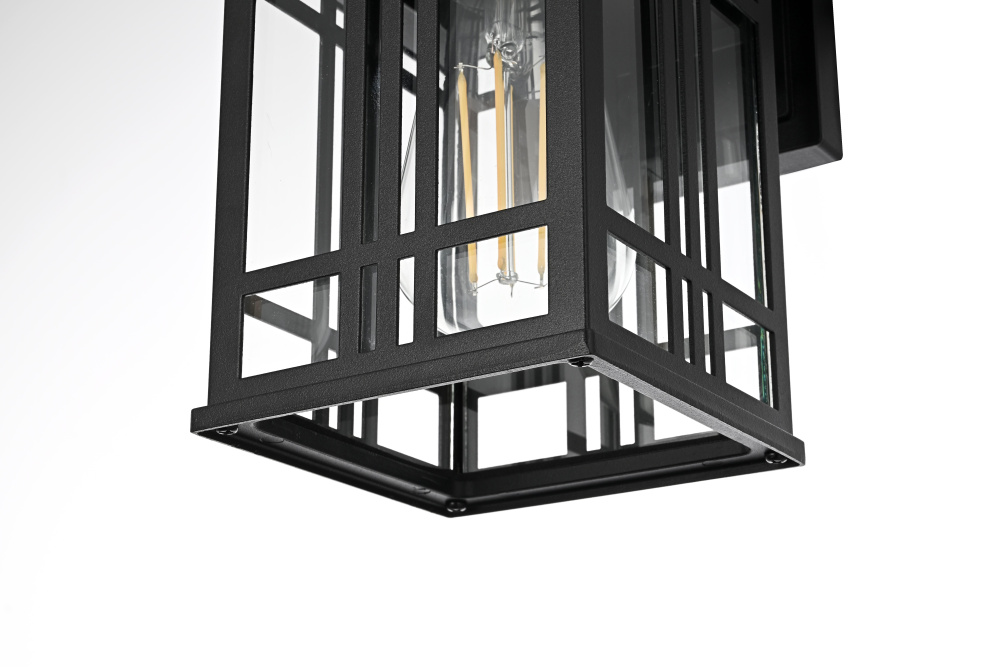 This outdoor wall light features a bold geometric metal frame with a grid-inspired design, bringing a structured, architectural presence to covered exterior spaces. The clear glass panels provide full visibility of the bulbs, maximizing illumination while maintaining a defined, modern look. Built from iron and aluminum, the black-finished frame is designed for long-term durability in damp environments. The open-bottom design ensures easy bulb changes, while the flush mount installation makes it ideal for covered patios, porches, breezeways, and entryways. Requiring one medium-base E26 bulb (not included), this fixture is also dimmable, allowing for adjustable brightness. ETL Wet Rated, this light is built to withstand humidity and moisture while delivering a modern, structured aesthetic for outdoor spaces. Built with marine-grade, corrosion-resistant aluminum, this sconce withstands coastal conditions for long-lasting durability.