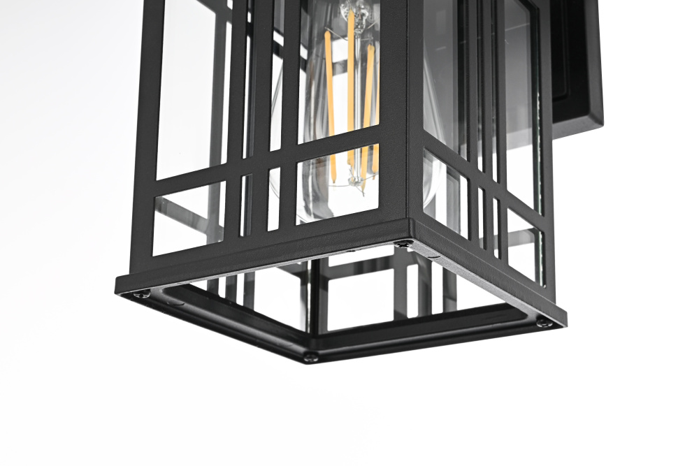 This outdoor wall light features a bold geometric metal frame with a grid-inspired design, bringing a structured, architectural presence to covered exterior spaces. The clear glass panels provide full visibility of the bulbs, maximizing illumination while maintaining a defined, modern look. Built from iron and aluminum, the black-finished frame is designed for long-term durability in damp environments. The open-bottom design ensures easy bulb changes, while the flush mount installation makes it ideal for covered patios, porches, breezeways, and entryways. Requiring one medium-base E26 bulb (not included), this fixture is also dimmable, allowing for adjustable brightness. ETL Wet Rated, this light is built to withstand humidity and moisture while delivering a modern, structured aesthetic for outdoor spaces. Built with marine-grade, corrosion-resistant aluminum, this sconce withstands coastal conditions for long-lasting durability.