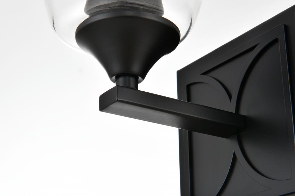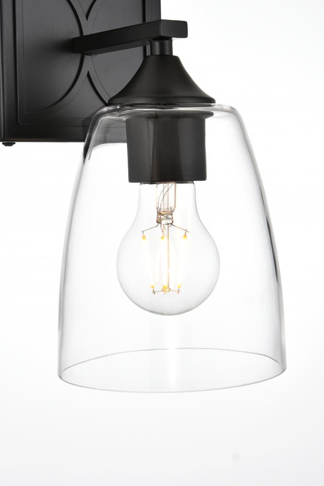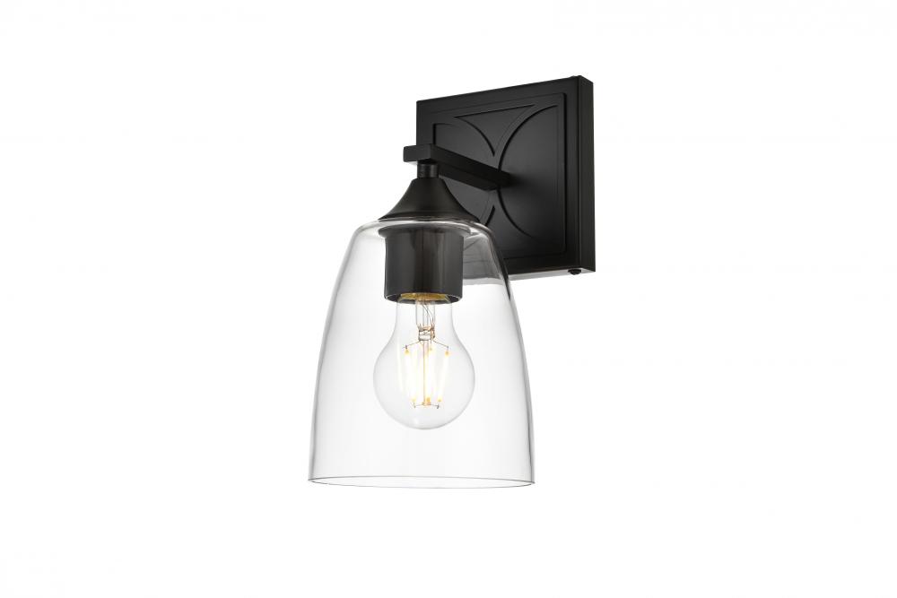 Defined by a sleek metal arm extends to suspend the clear tapered glass shade. A contemporary stunner, it shows off the straight line details from the backplate and the streamline thin metal arm. Compatible with dimmers, so you'll have the right amount of light in any given time of the day. Completely versatile, you can place this wall light as an uplight or downlight. Rated for use in damp locations, this will work perfectly over a vanity in your bathroom.
