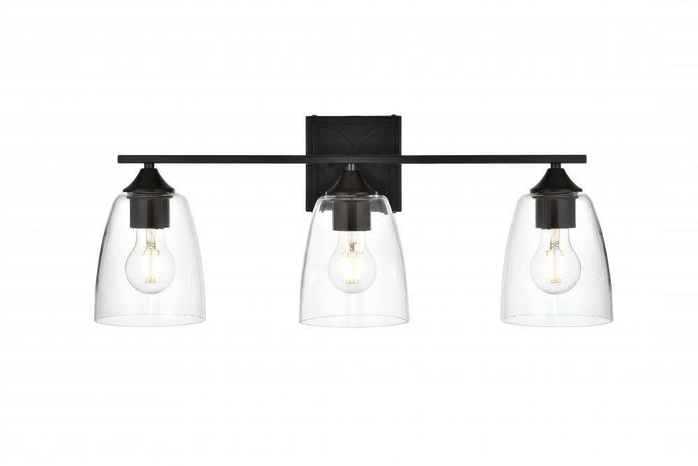 Defined by a sleek metal arm extends to suspend the clear tapered glass shade. A contemporary stunner, it shows off the straight line details from the backplate and the streamline thin metal arm. Compatible with dimmers, so you'll have the right amount of light in any given time of the day. Completely versatile, you can place this wall light as an uplight or downlight. Rated for use in damp locations, this will work perfectly over a vanity in your bathroom.