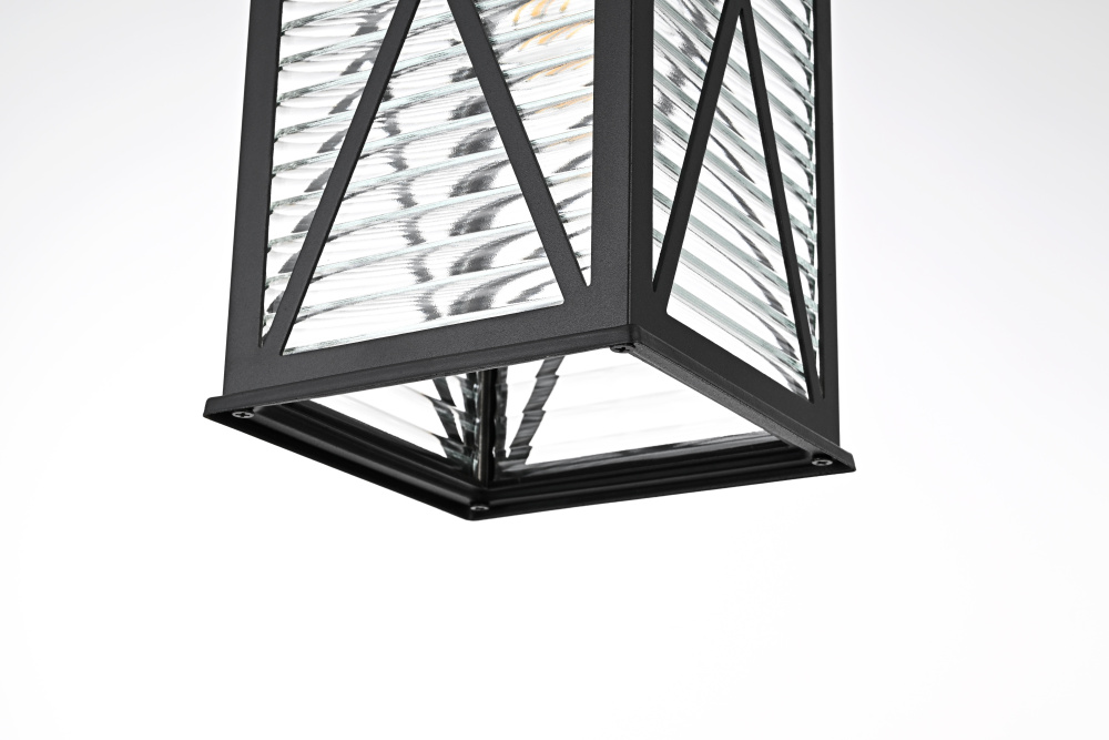 This outdoor pendant light blends classic lantern styling with modern craftsmanship, featuring a rectangular metal frame, fluted glass panels, and crisscross detailing. The clear fluted glass creates a rippled effect, diffusing the light for a balanced glow while maintaining brightness. Crafted from iron and aluminum, the sturdy black-finished frame ensures long-term durability in outdoor conditions. The adjustable 39-inch chain offers a hanging height between 18 and 56 inches, making it adaptable for porches, patios, and covered entryways. The open-bottom design allows for quick and hassle-free bulb changes, while the fixture supports a single medium-base E26 bulb (40W max, not included). Dimmable and ETL damp Rated, this pendant light brings a structured and refined presence to exterior spaces. Built with marine-grade, corrosion-resistant aluminum, this sconce withstands coastal conditions for long-lasting durability.