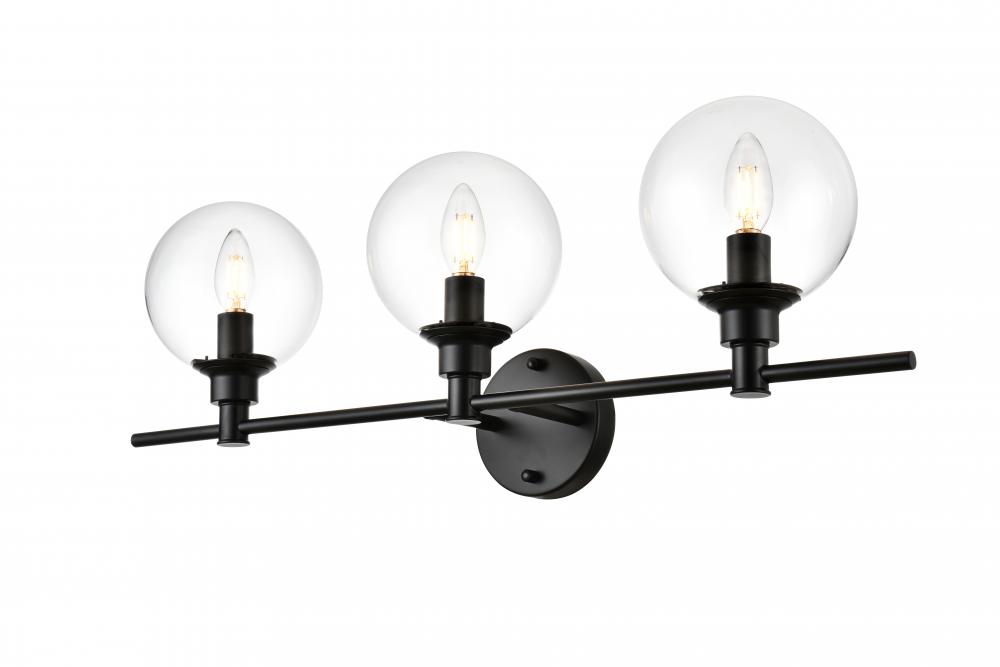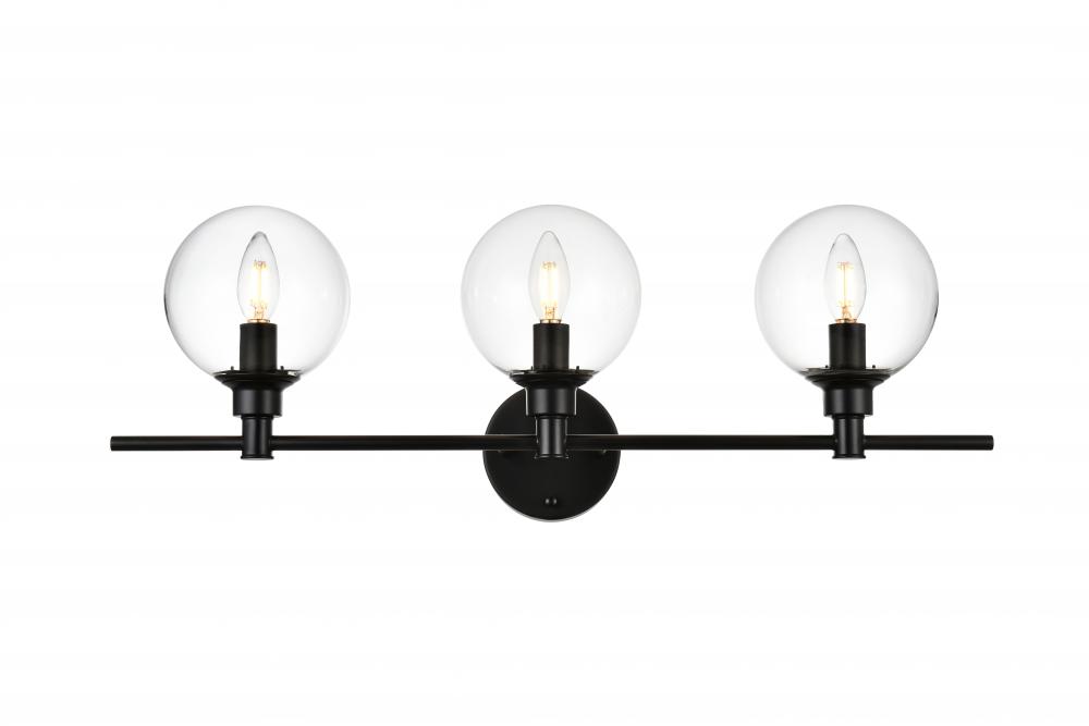 This armed sconce features a streamlined and minimalistic design that complements any space in your home. Shown with the clear glass shades, this wall sconce is versatile and can be placed in a bathroom,entry way, or hallway. Compatible with dimmers, so you'll have the right amount of light in any given time of the day. The hardwired fixture is safe to use in damp locations. Made from iron with a modern finish, it includes a round backplate and a matching arm that holds in place three 40W bulb ( sold separately). Available in multiple finishes. Can be installed as an uplight or a downlight.