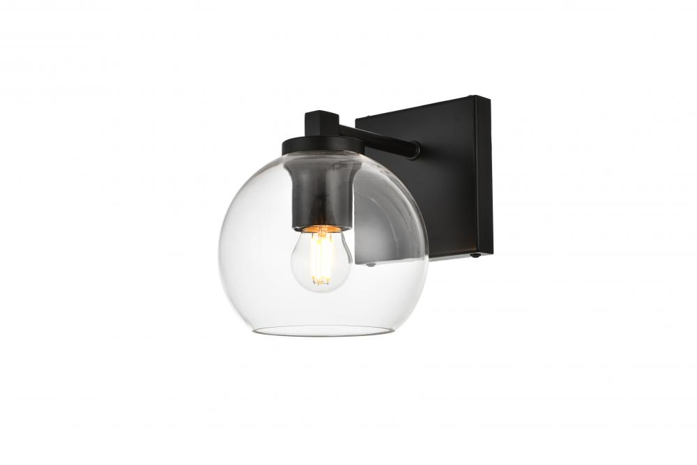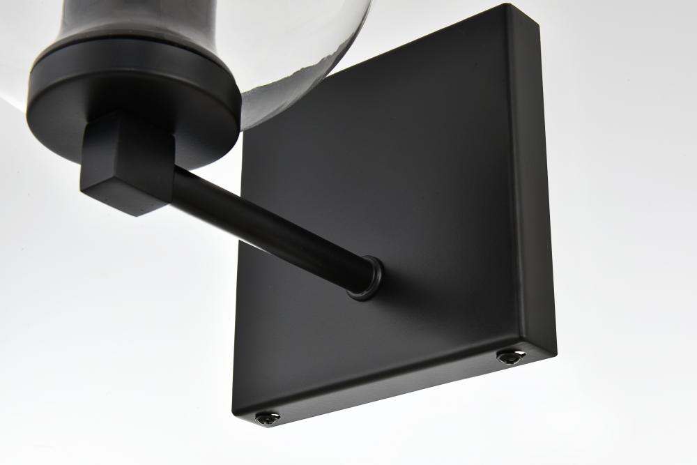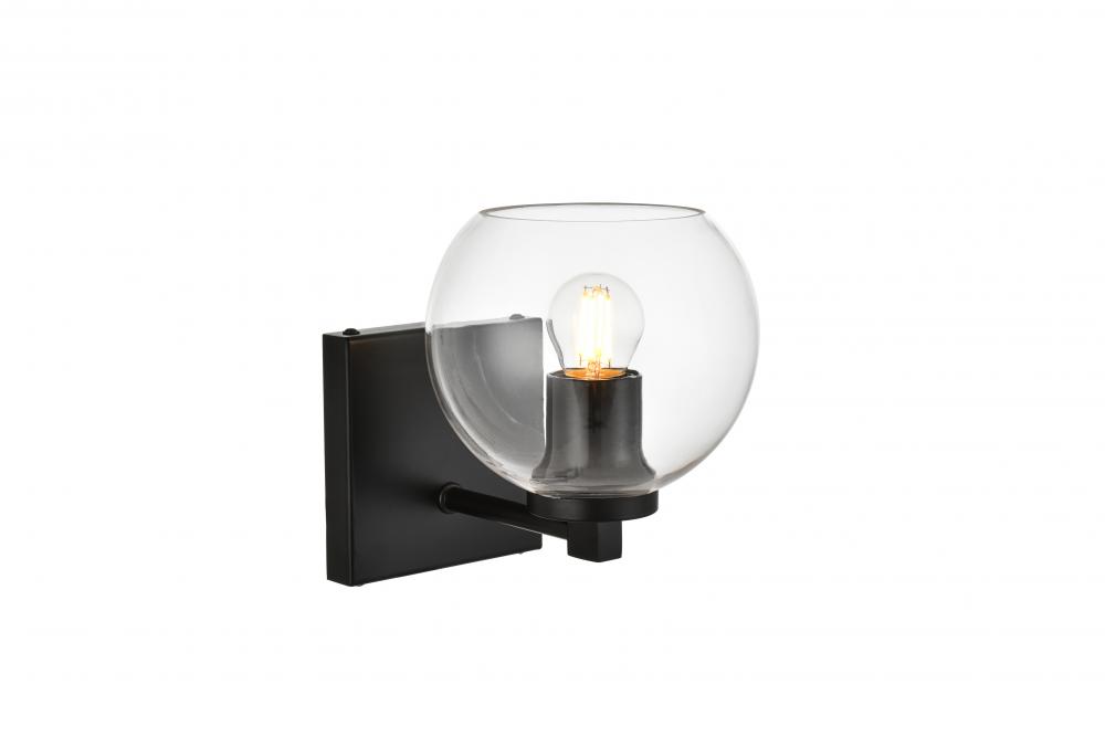 Defined by a sleek metal arm extends to suspend the clear spherical glass shade. A contemporary stunner, it shows off the straight line details from the backplate and the streamline thin metal arm. Compatible with dimmers, so you'll have the right amount of light in any given time of the day. Completely versatile, you can place this wall light as an uplight or downlight. Rated for use in damp locations, this will work perfectly over a vanity in your bathroom.