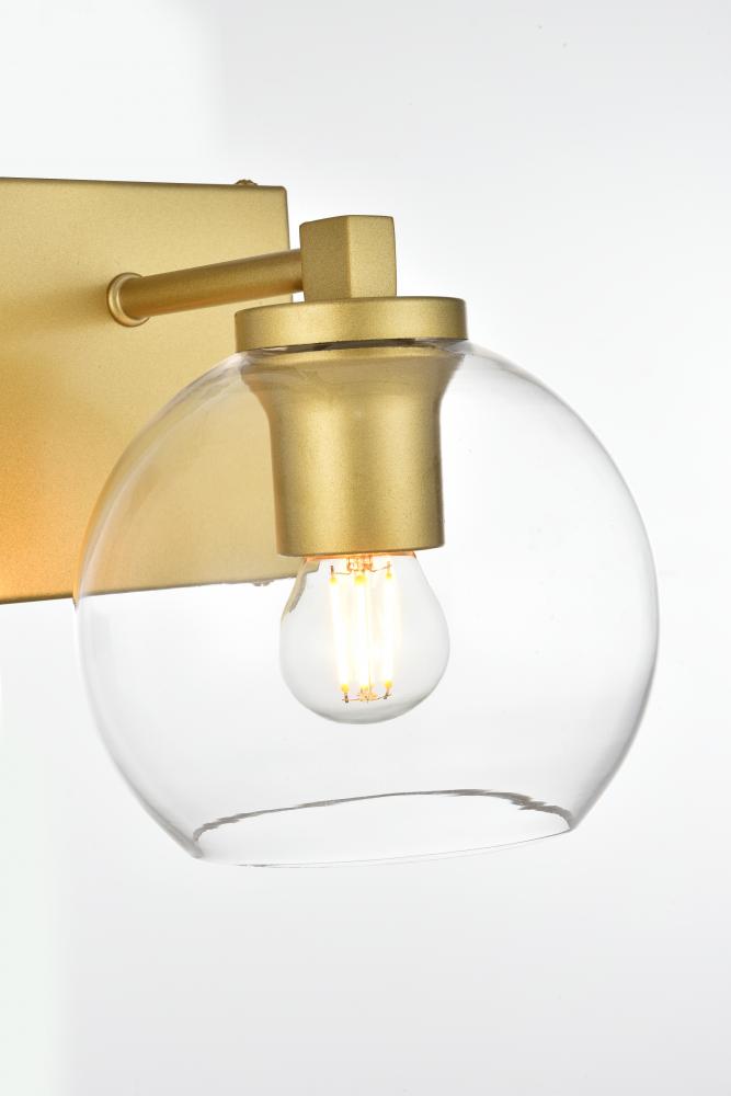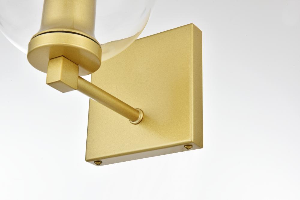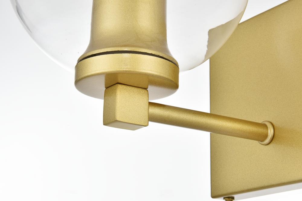 Defined by a sleek metal arm extends to suspend the clear spherical glass shade. A contemporary stunner, it shows off the straight line details from the backplate and the streamline thin metal arm. Compatible with dimmers, so you'll have the right amount of light in any given time of the day. Completely versatile, you can place this wall light as an uplight or downlight. Rated for use in damp locations, this will work perfectly over a vanity in your bathroom.