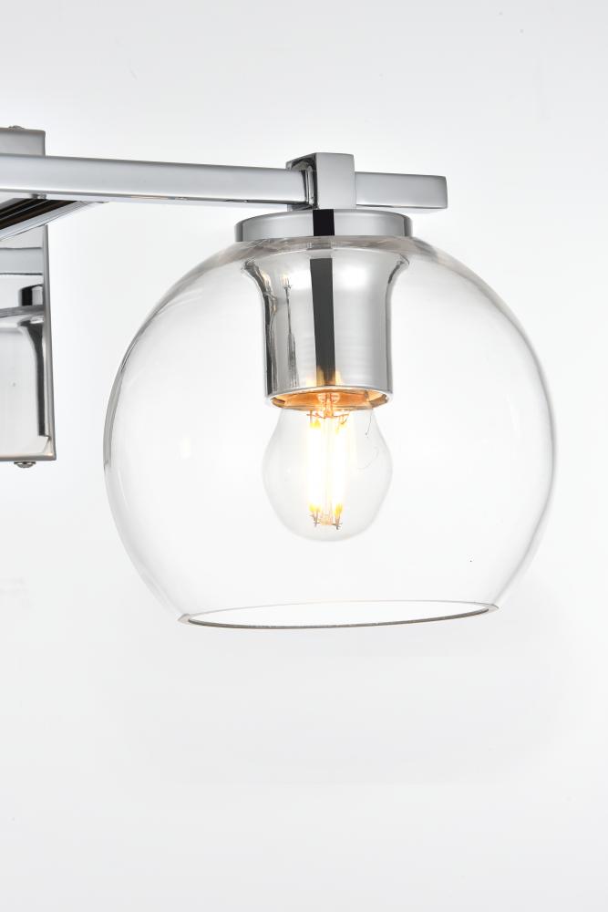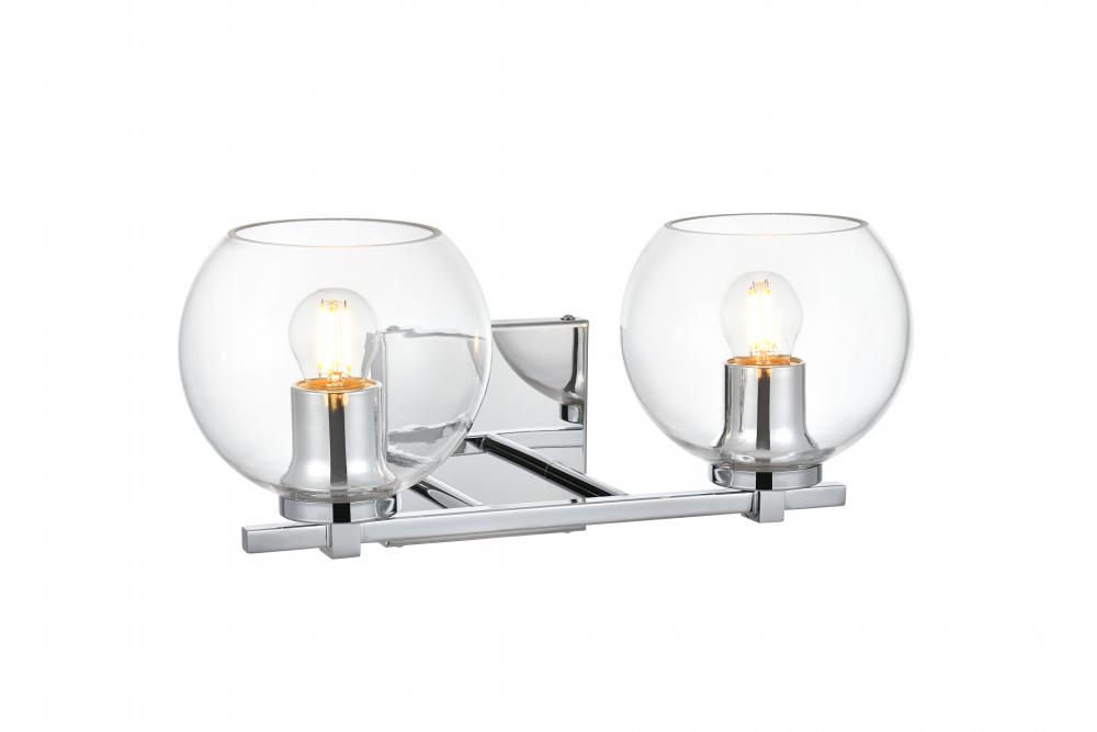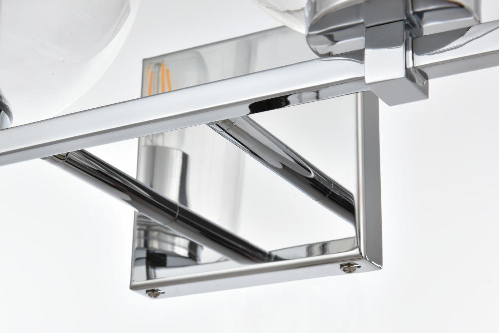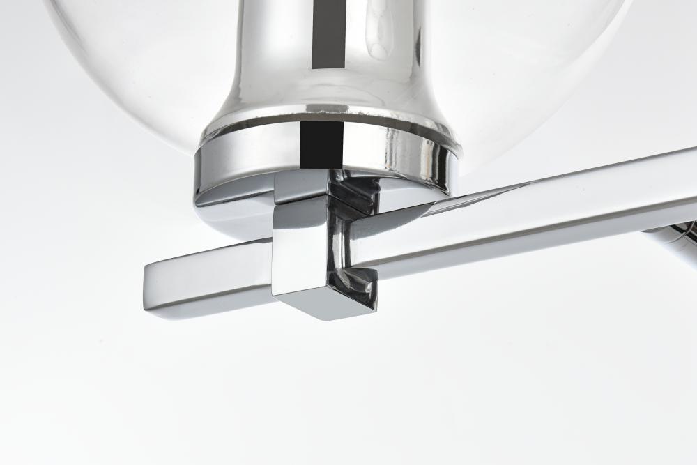 Defined by a sleek metal arm extends to suspend the clear spherical glass shade. A contemporary stunner, it shows off the straight line details from the backplate and the streamline thin metal arm. Compatible with dimmers, so you'll have the right amount of light in any given time of the day. Completely versatile, you can place this wall light as an uplight or downlight. Rated for use in damp locations, this will work perfectly over a vanity in your bathroom.